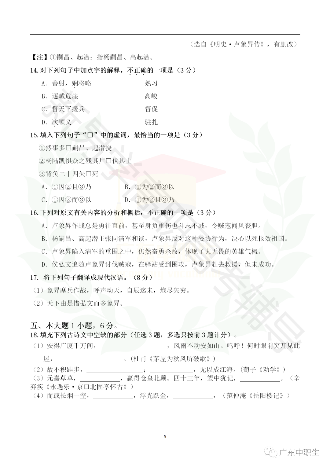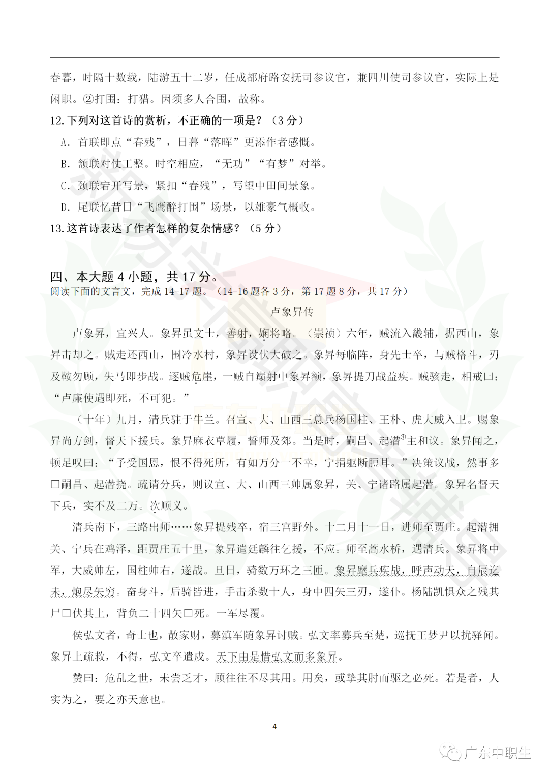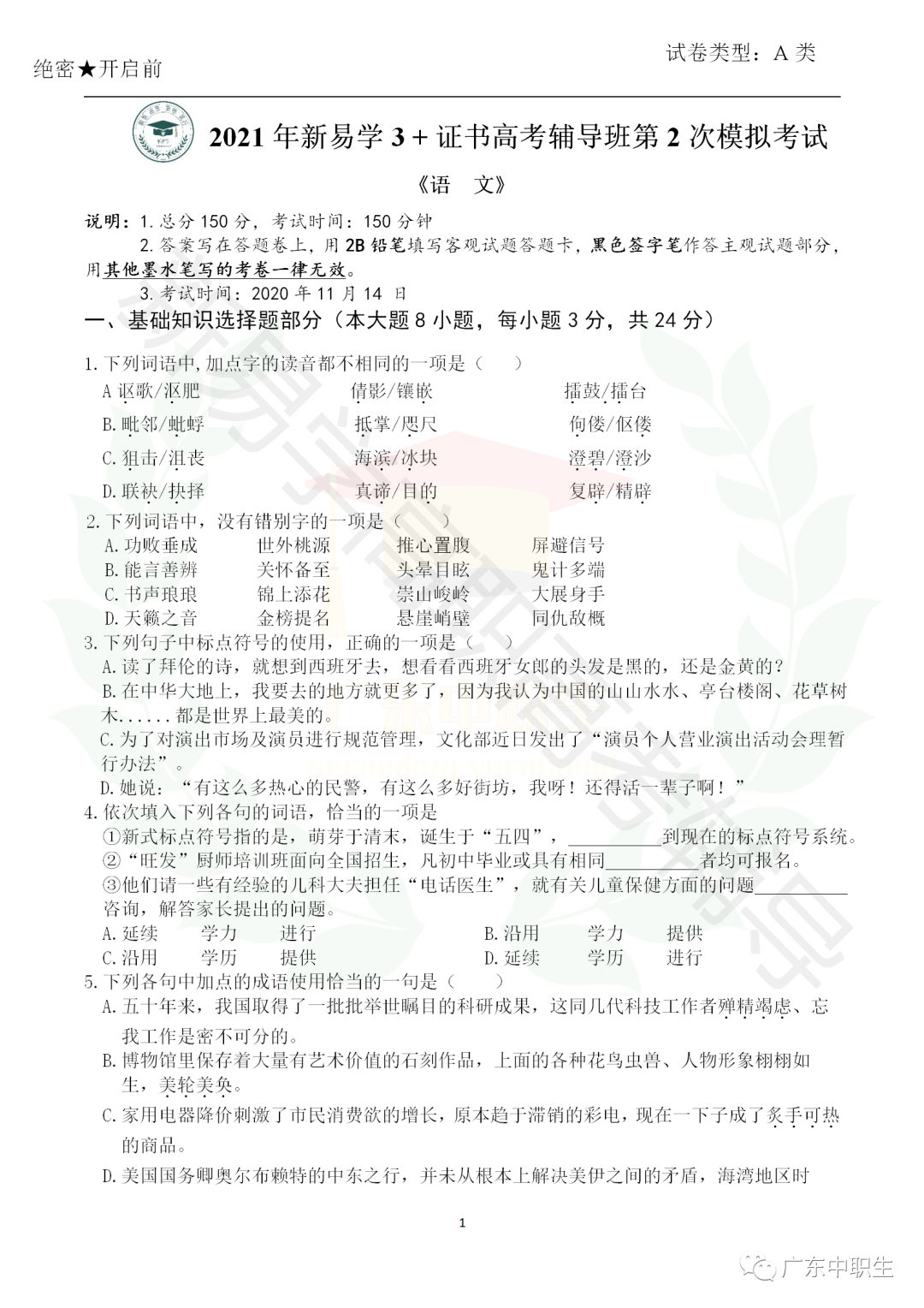 新易学第二次高职语文模拟考真题公布,来测测你能考几分?