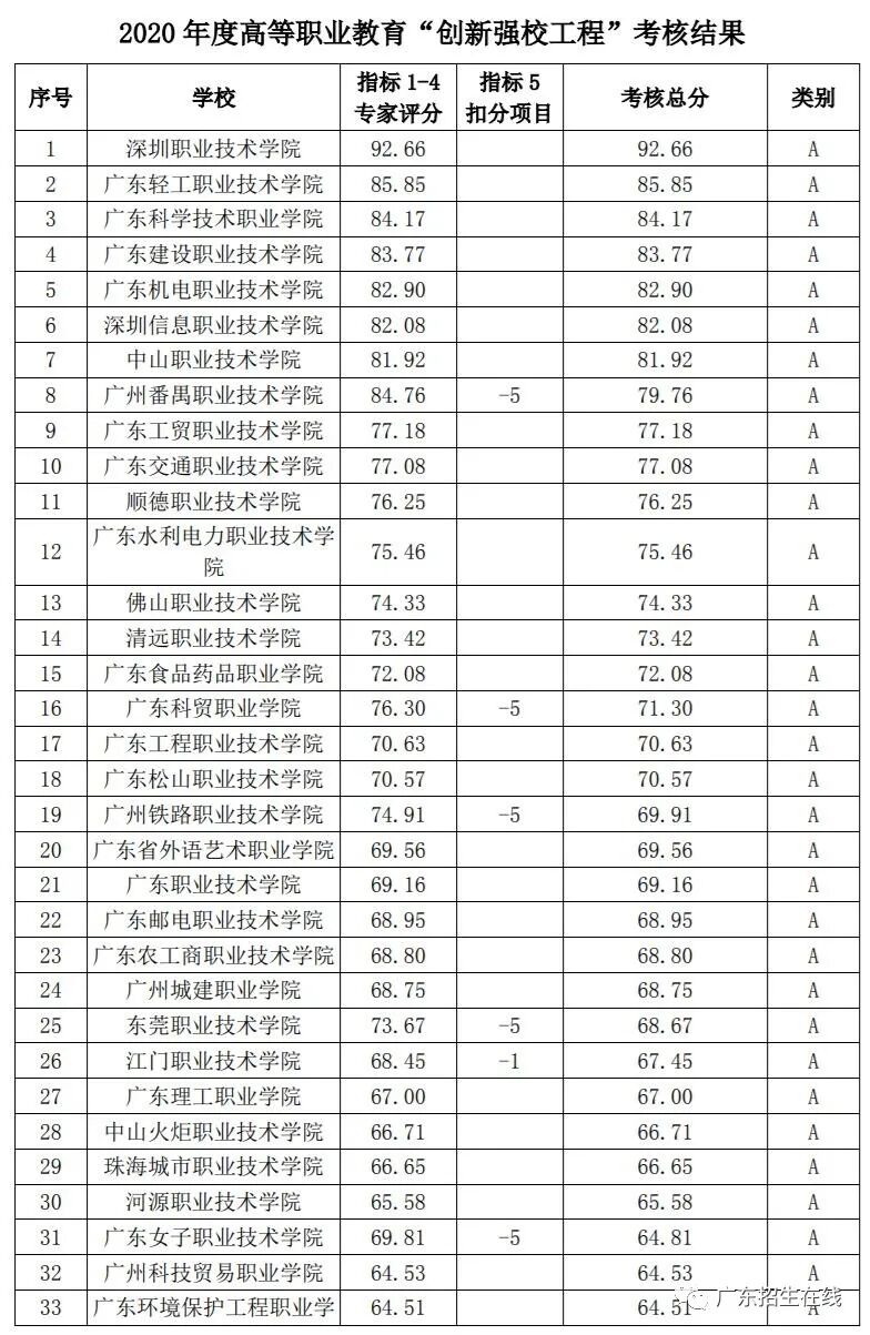新出炉:教育厅给2020年度的广东高职院校打分,第一名是