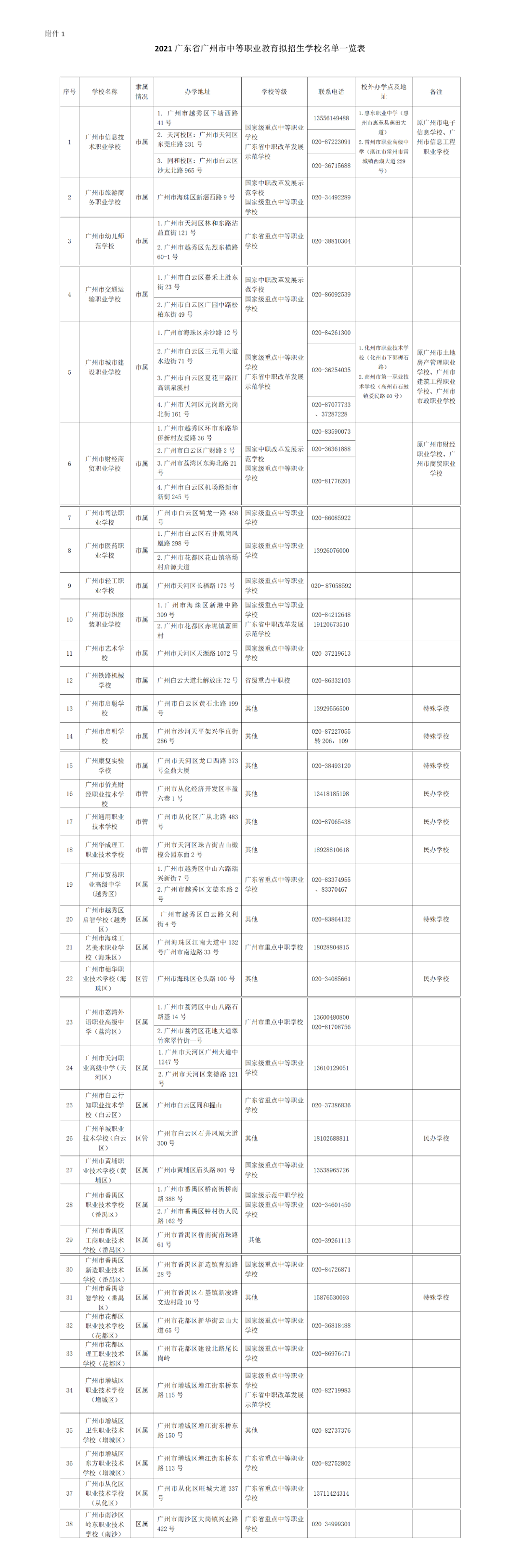 近日,广州市教育局公示了2021年广州市中等职业教育拟招生学校名单,名单显示,共有38所广州市中等职业教育进行招生。