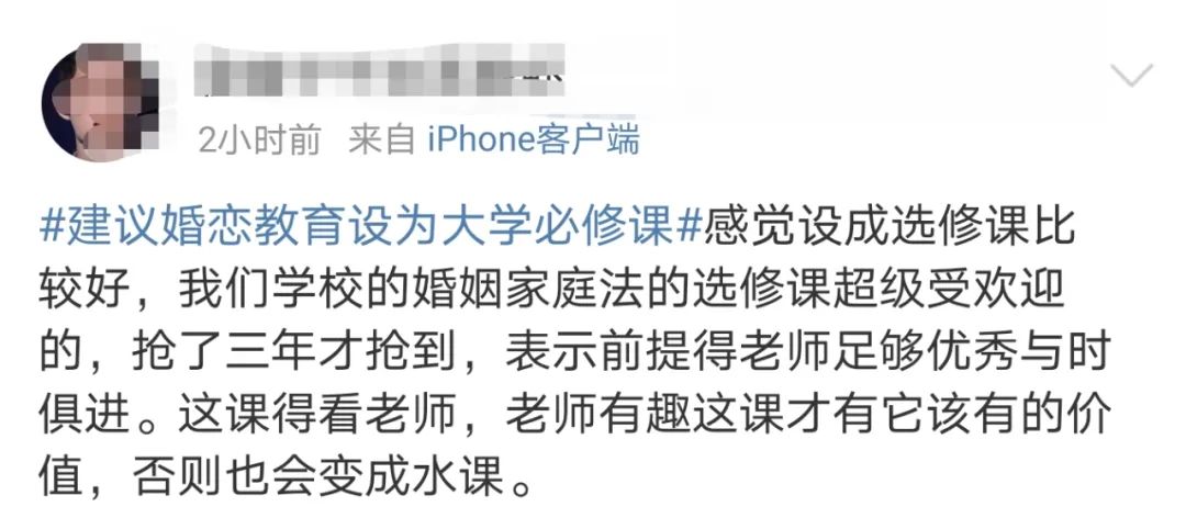 也有网友表示,将婚恋教育设为选修课就可以了: