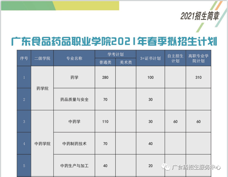 公办高职|广东食品药品职业学院2021年3+证书招生计划