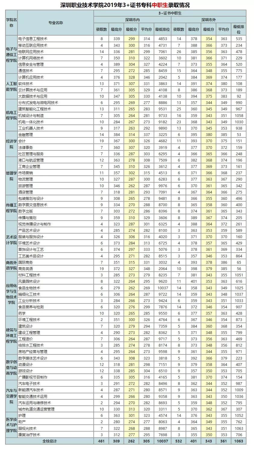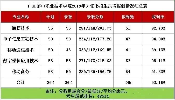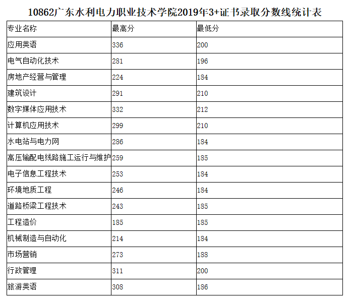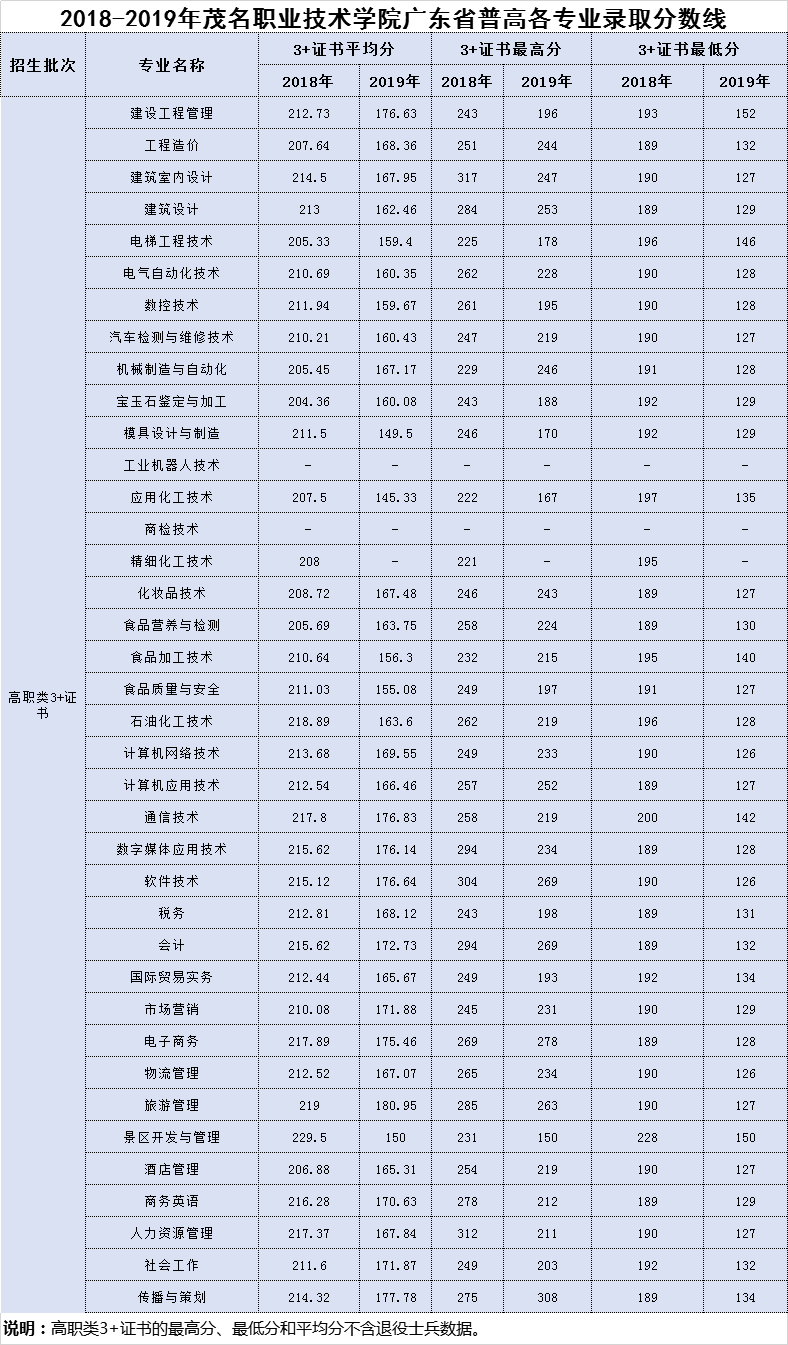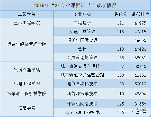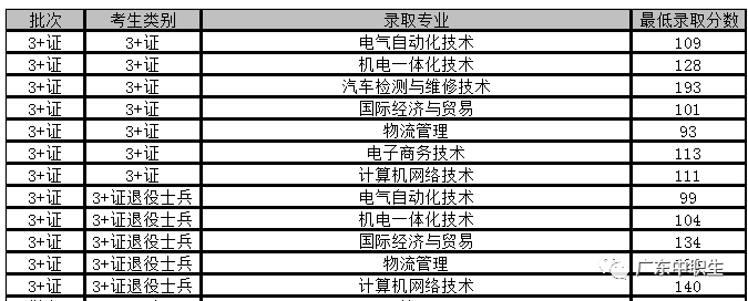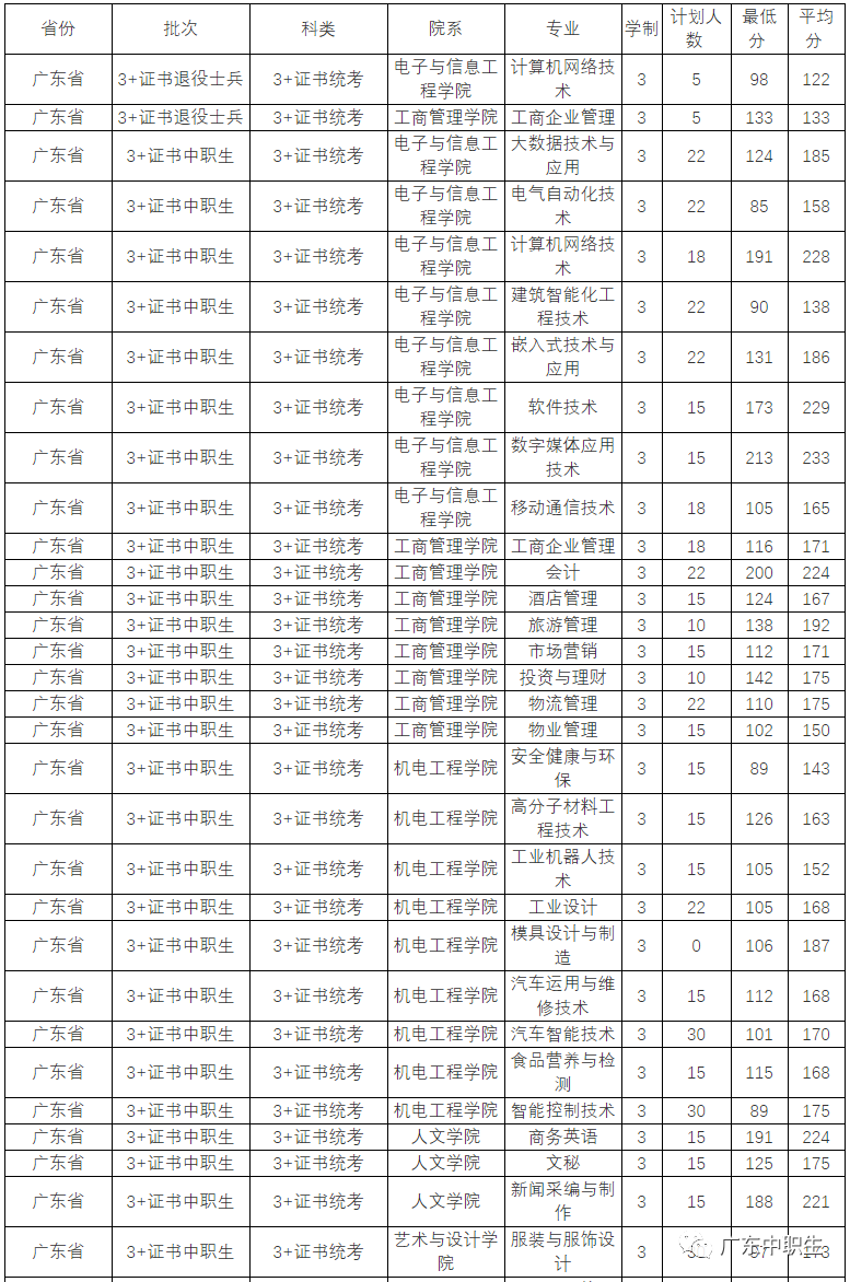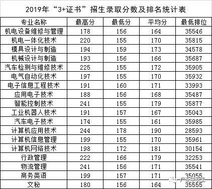 广东19年3+证书院校专业分数线最新汇总!