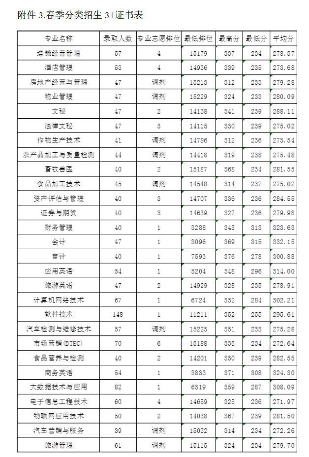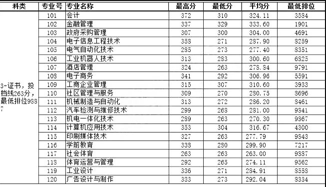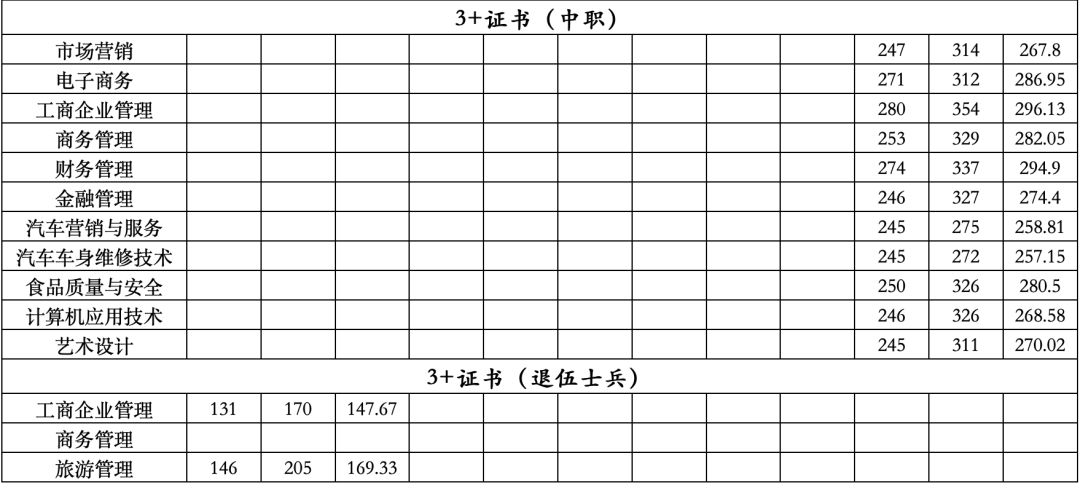 20年3+证书公办院校各专业录取分数线更新