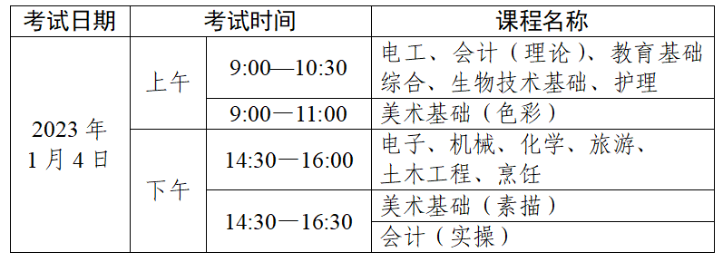 我们先来看看广东省教育考试院原定于1月4日的中职技能证书考试安排: