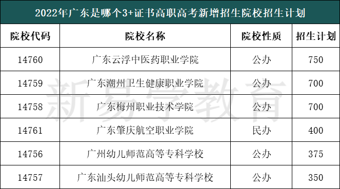 今年新增院校有6所,分别是广东潮州卫生健康职业学院、广东梅州职业技术学院、广东汕头幼儿师范高等专科学校、广东云浮中医药职业学院、广州幼儿师范高等专科学校、广东肇庆航空职业学院(民办)。
