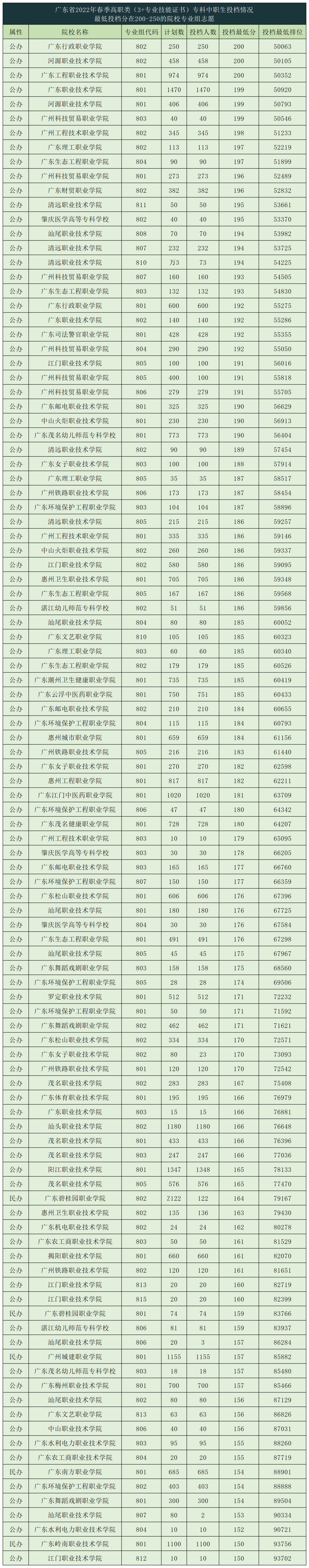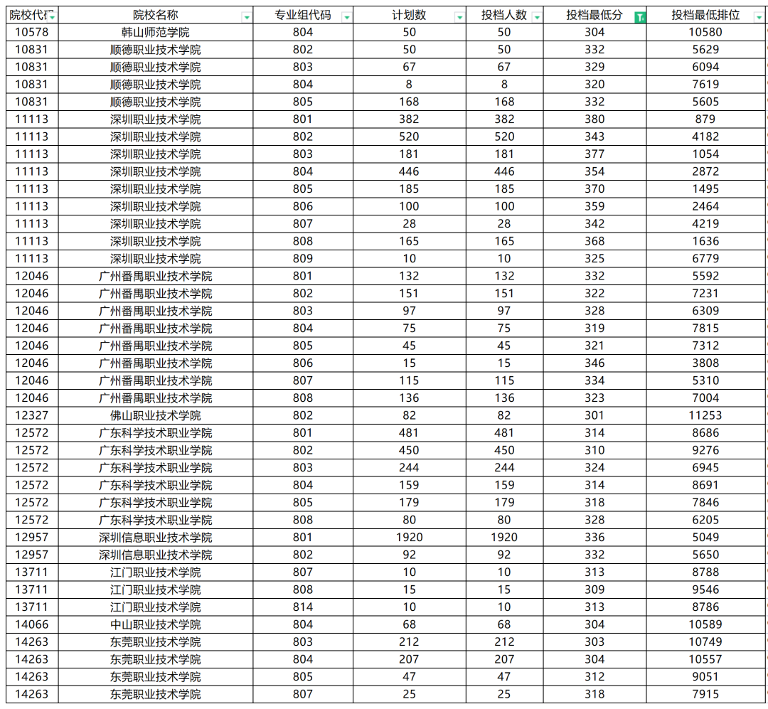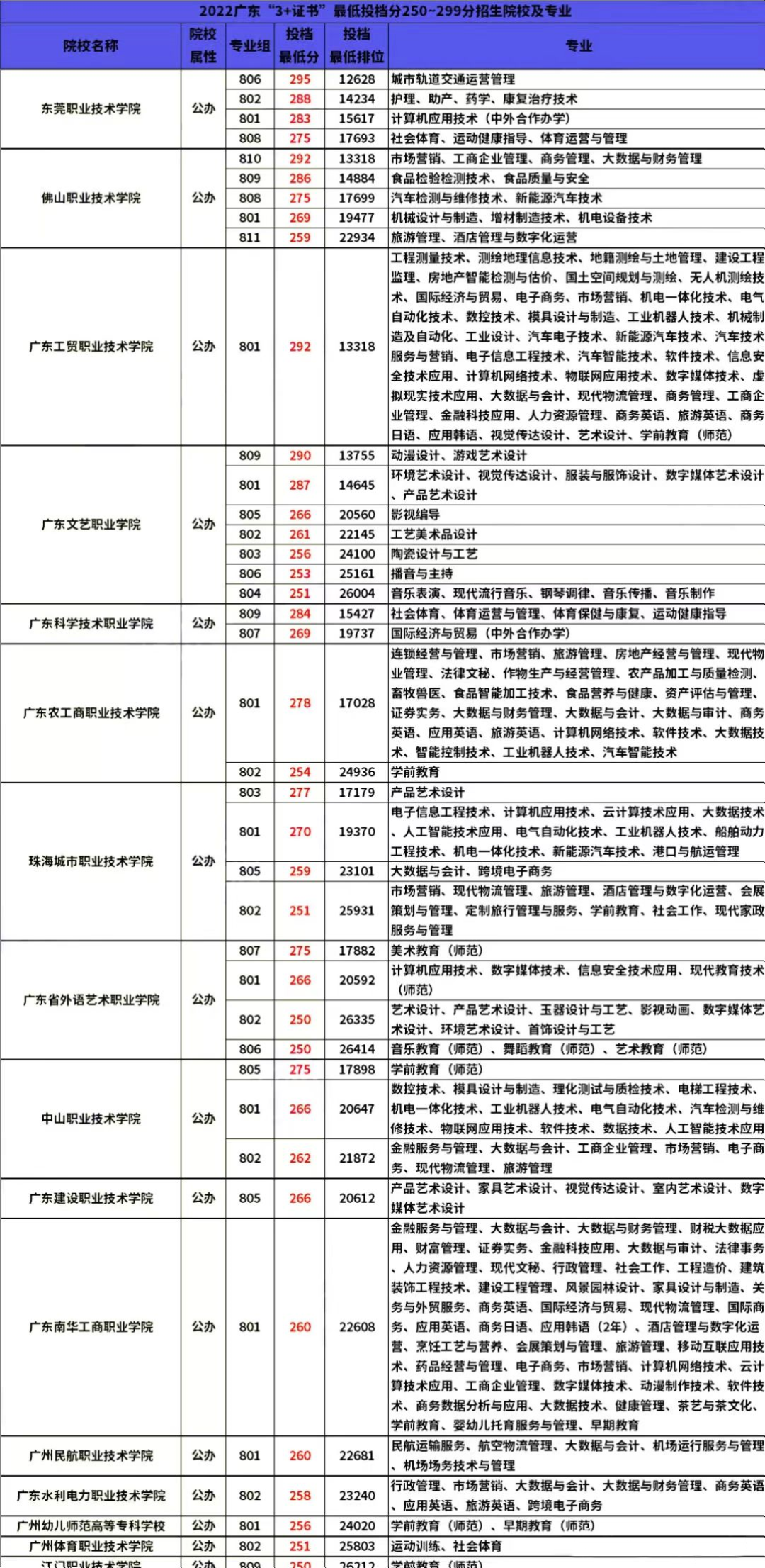 2023年"3+证书"100~300分以上填报院校专业参考