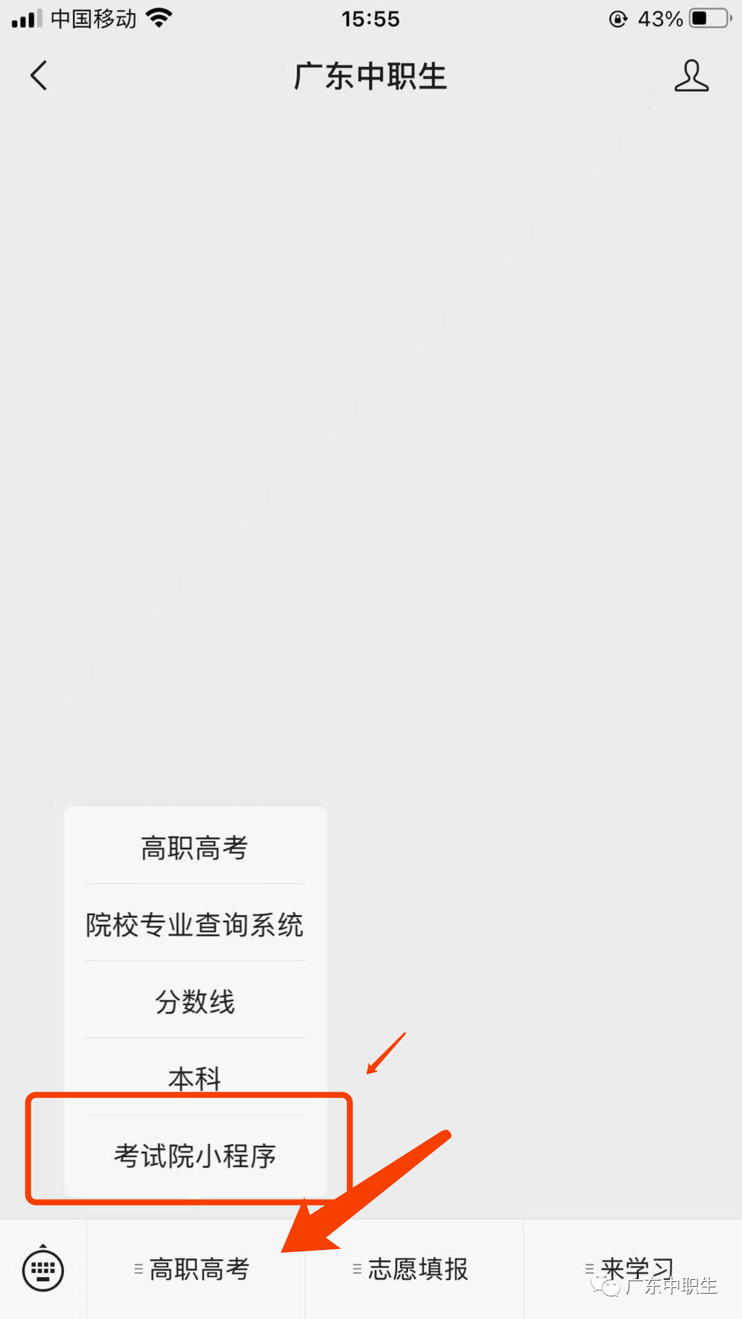 点击进入“广东省教育考试院”小程序