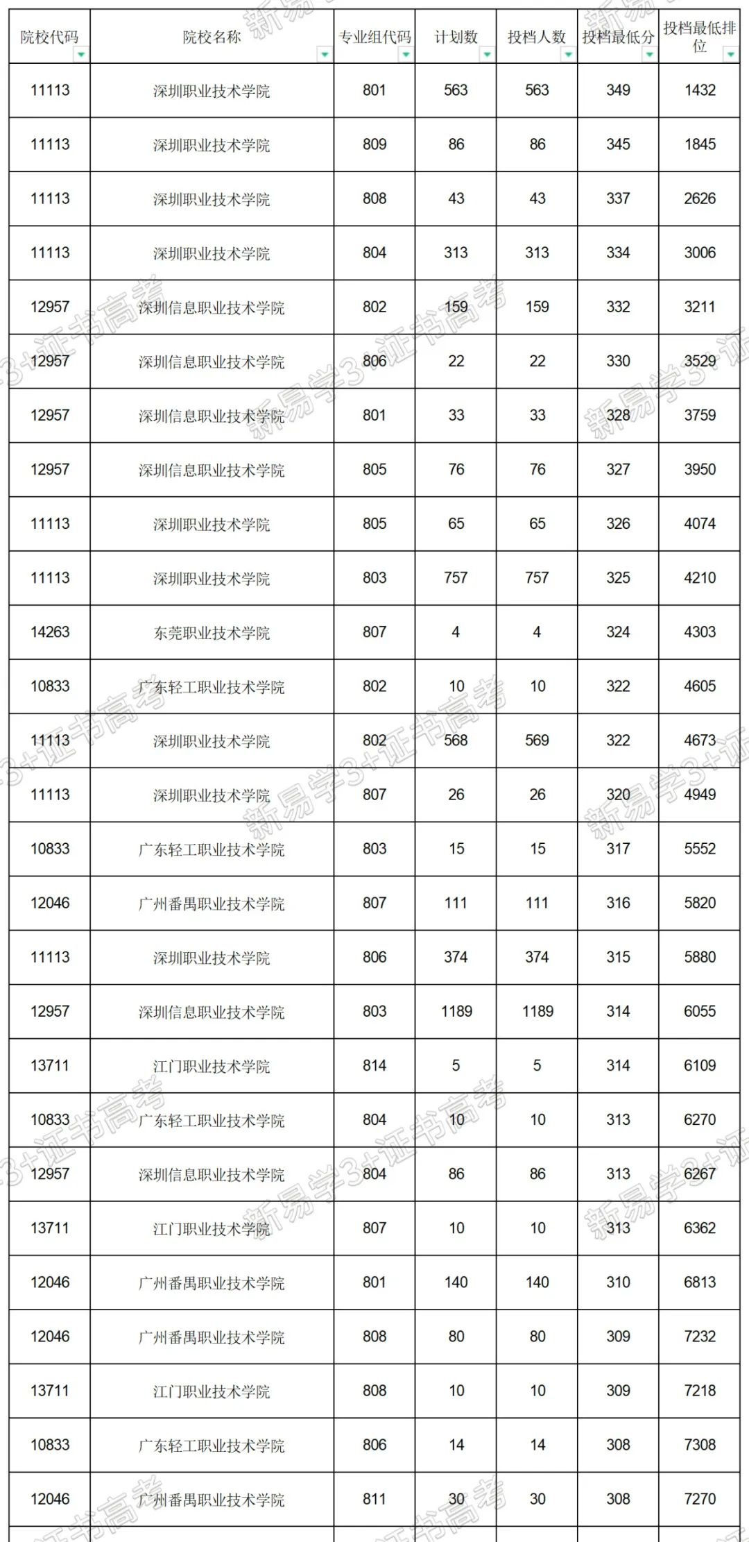 同时,像深职、深信、番职等热门公办普遍上到300分以上,且比较抢手的专业(如教育类、医学类、电子信息类等专业),今年竞争激烈程度依旧是非常高