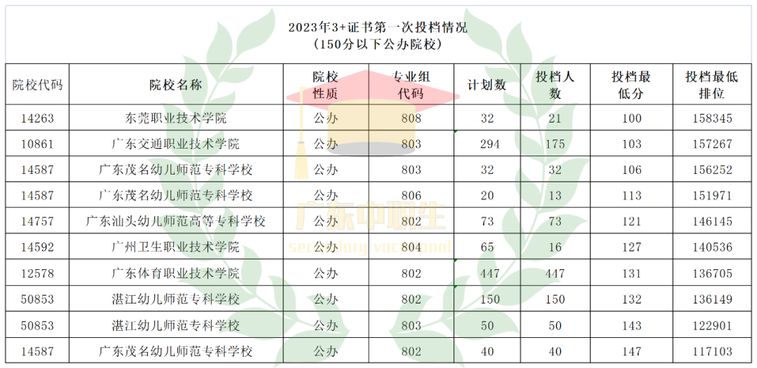 因此,很多公办院校的最低投档分较去年有明显上升,接近省控线(100分)的院校数量也有所减少!低分考公办院校是越来越难了,3+证书的竞争力在不断地加大。
