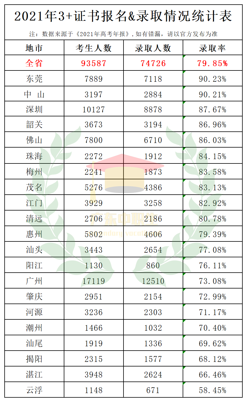 23年“3+证书”全省录取率低于73%!各地录取率曝光!广州最多人录取不上?