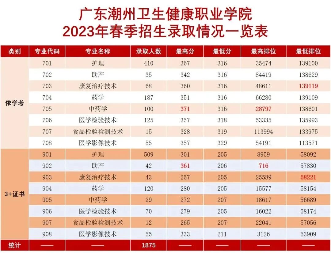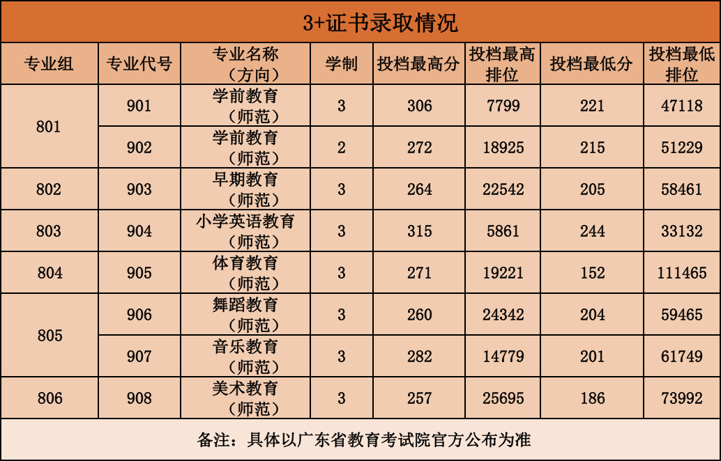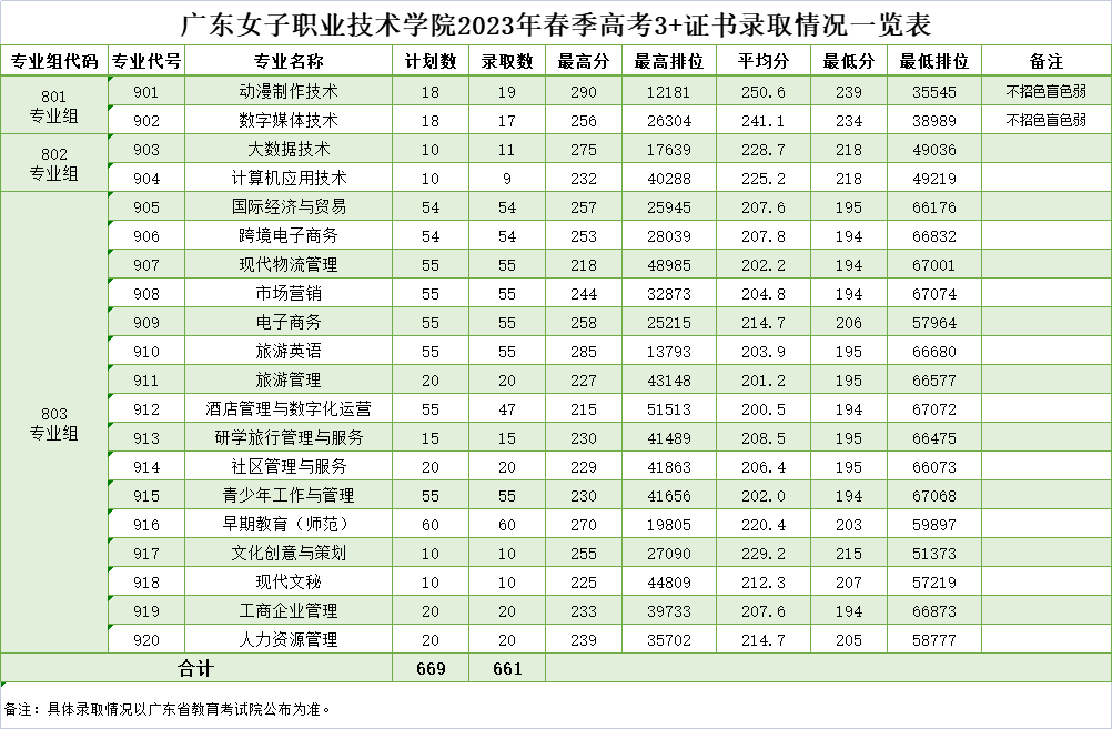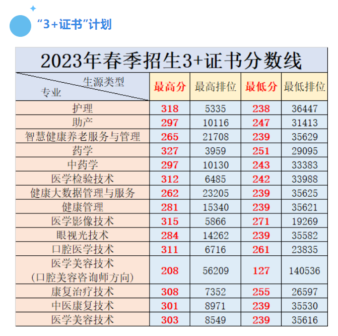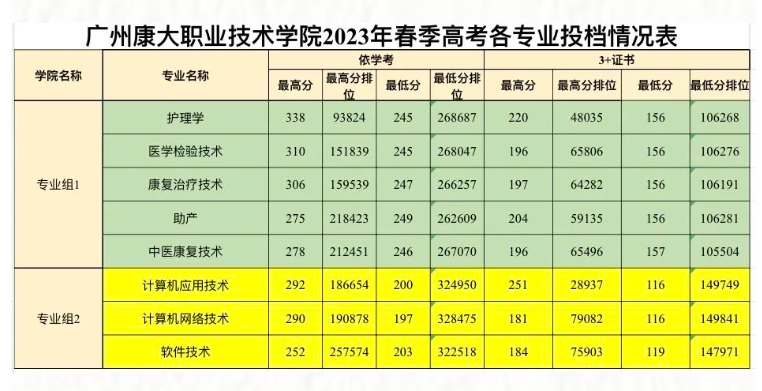 广东2023年“3+证书”专科批次投档线,部分院校公布了今年春季高考各专业录取/投档分数及排位,一起来看看