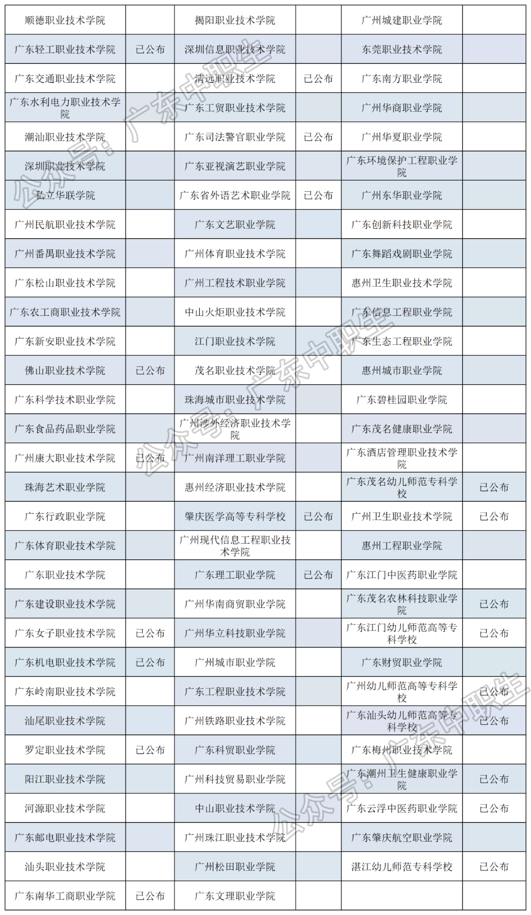 (可点击图片放大查看公布院校)