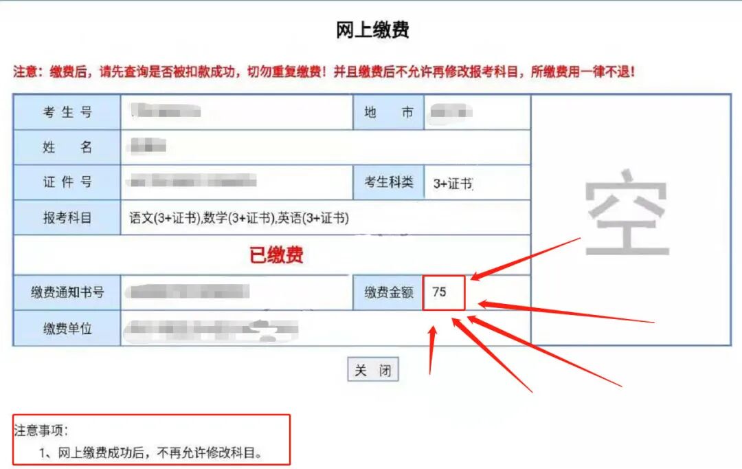 3+证书考生报名春季高考费用为75元。
