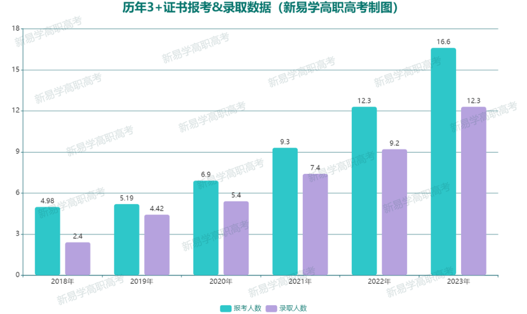 由于本科层次招生数量少、分数较高,专业对口、技能证书等相关要求,上岸本科的同学仅占报考人数的不到万分之一(2023年3+证书高职高考报考人数16.6w,录取人数12.3w)。
