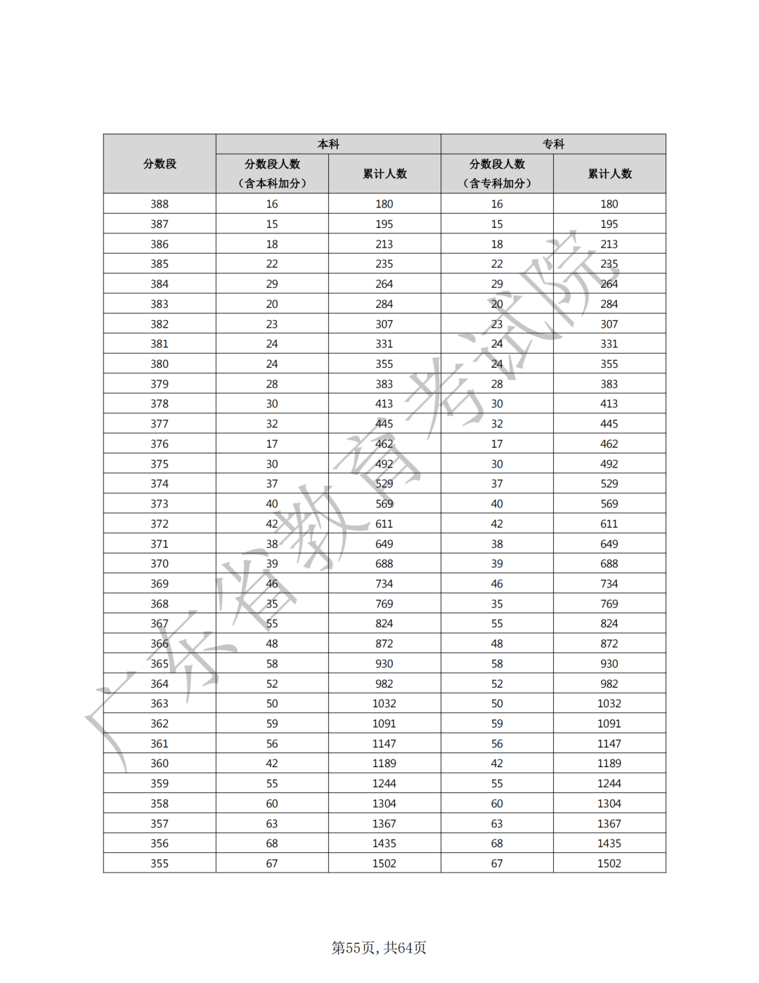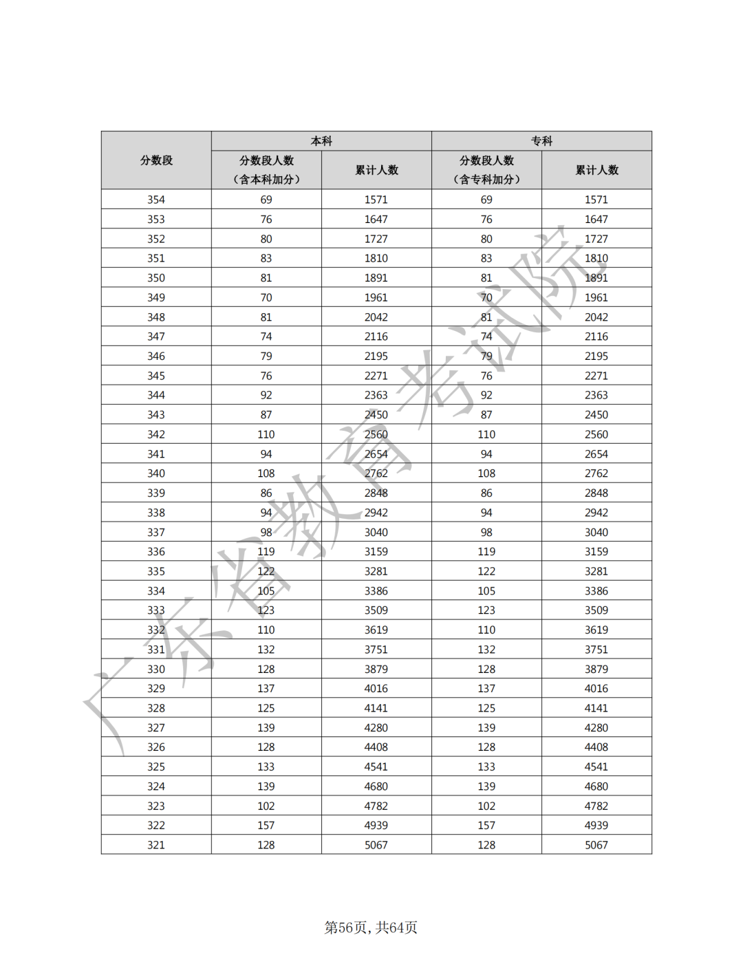 2022年3+证书总考生超12万人,该年最高分为420分1人,400分以上137人,专科300分以上11559人,80分以上122041人。300分以上考生占总考生人数的9.63%。