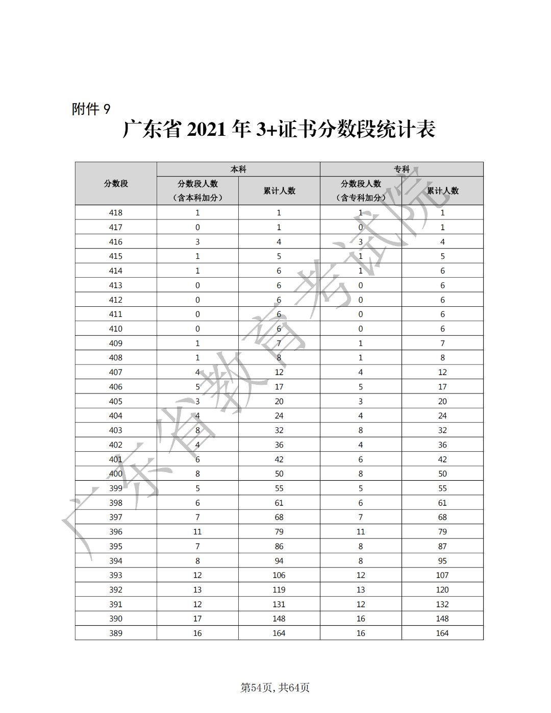 2023年广东3+证书考生总数大于16.6万人,最高分421分1人,80分以上共累计16.3万人,其中400分以上10人,300分以上9390人,100分上线人数15.8万人,上线人数比去年上线人数剧增3.8万人。300分以上考生占总考生人数的5.65%。