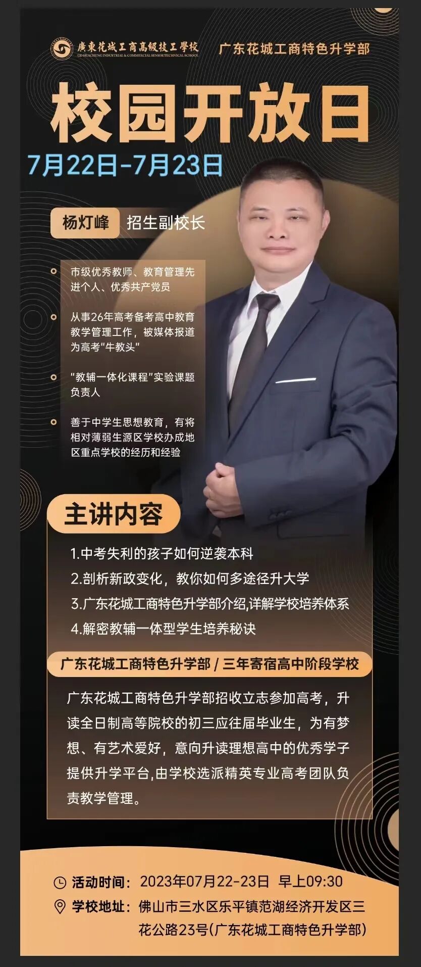 路线:导航搜索“广东花城工商·特色升学部(佛山)”即可到达校区
