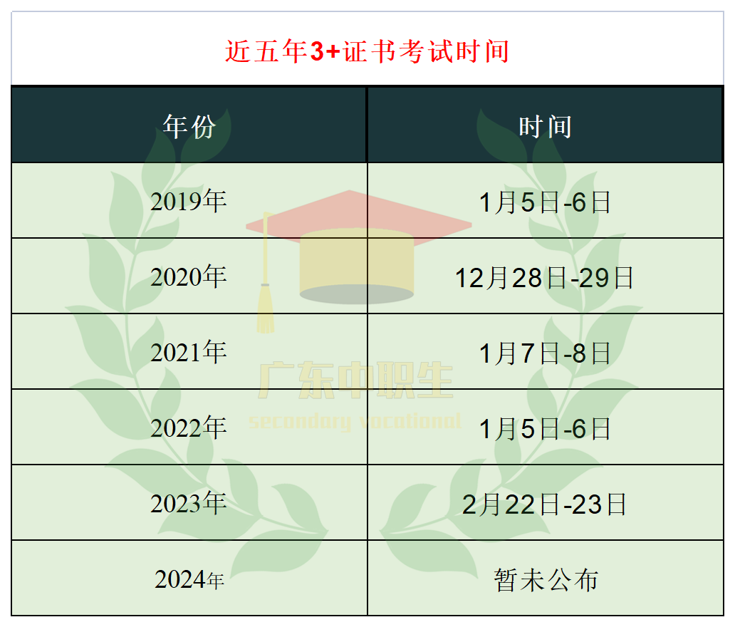 注:2023年3+证书考试推迟,原定考试时间为1月7-8日。