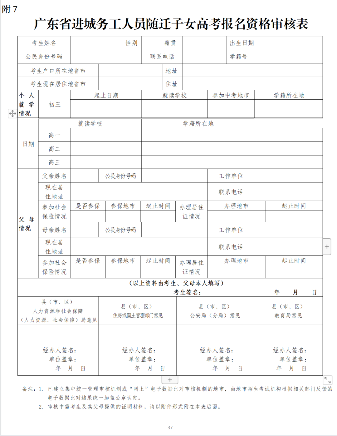 注:能否在父母居住证所在地(市)报考,还要看各地市的规定,原则上都是回原高中(含中职、技校)毕业学校所在地(市)报考。