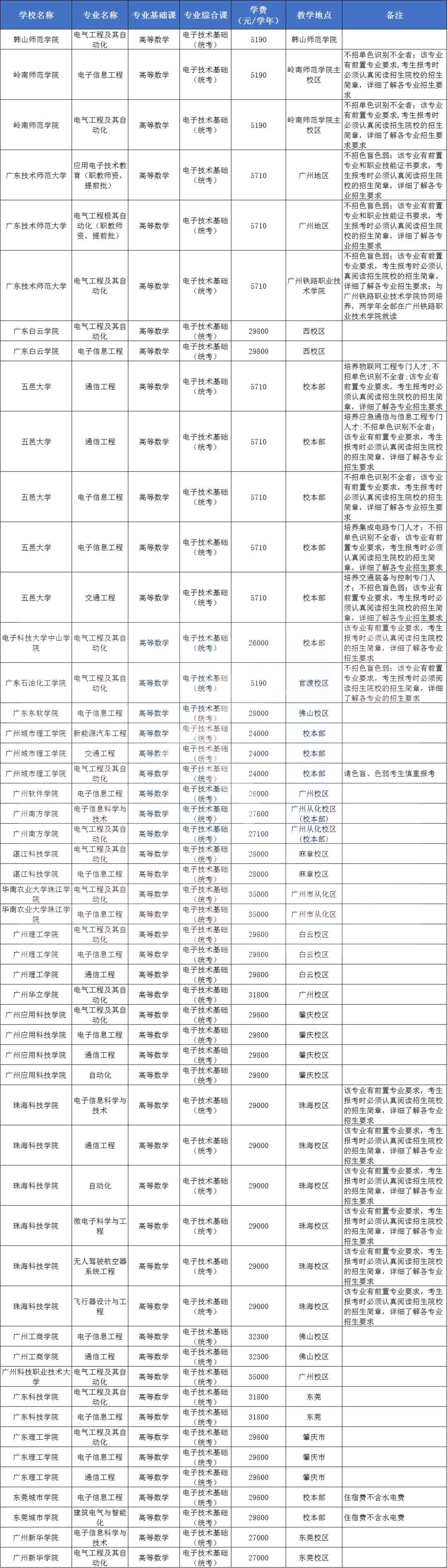 校考专业可报专业院校汇总
