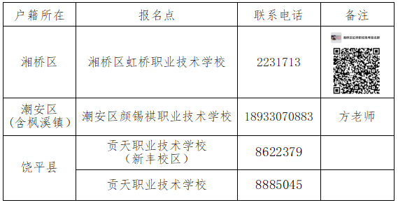 (2)非潮州市高中学校毕业的我市户籍往届生,应到户籍所在区(县)指定的报名点报考(联系方式见附件)。
