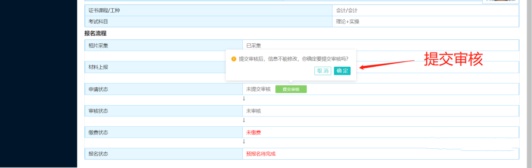 这些提醒一下,提交前要确保的所填的信息正确(含上传的资料),提交审核后不能修改。
