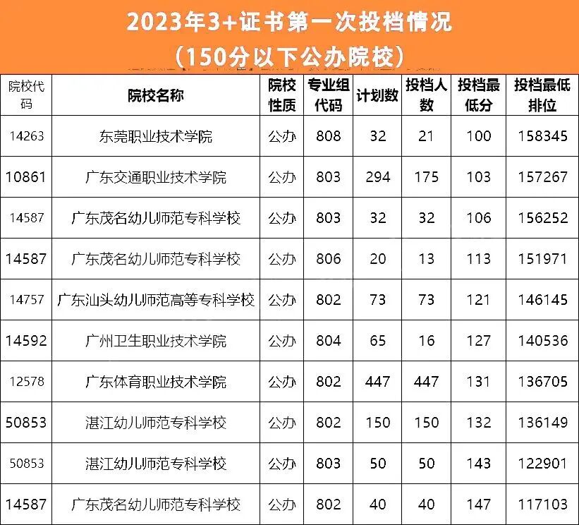 下面是广东省2023年3+证书