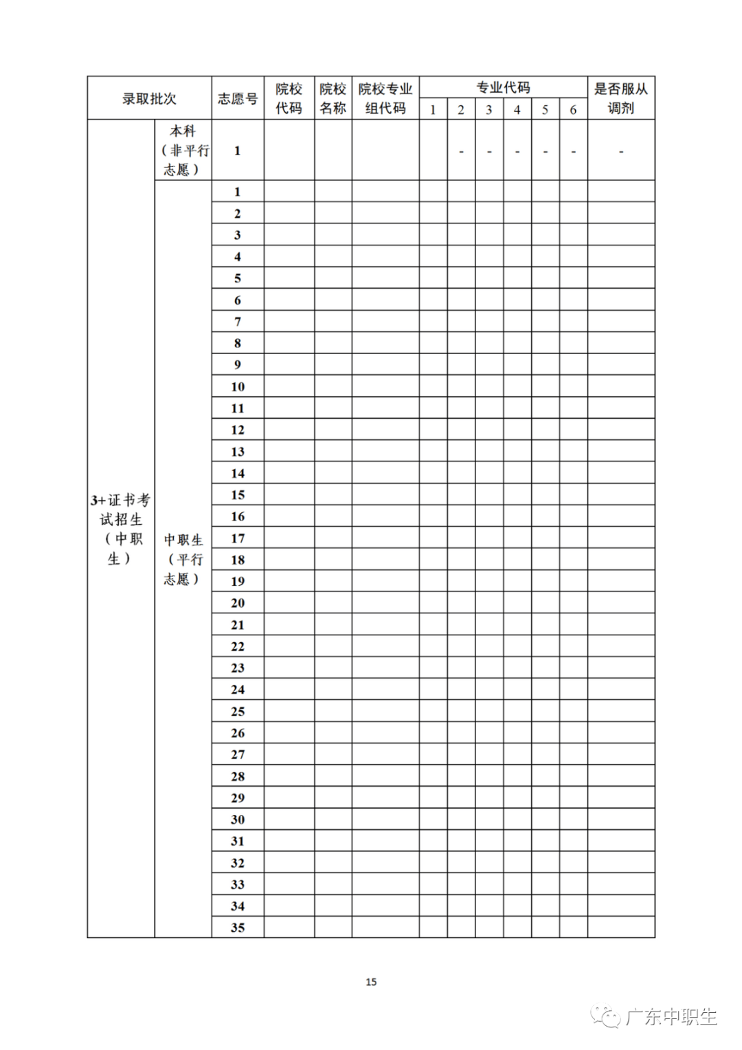 专科组输入院校代码、专业组代码和专业代码填报,一共可以填35个院校专业组,可以不填满。