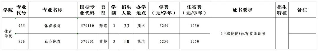 其中所有的专业都是要求持有体育证书哦!