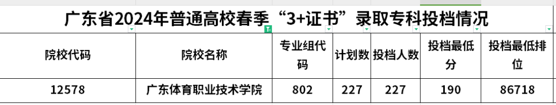 广东体育职业技术学院802专业组最低录取分数是190分!