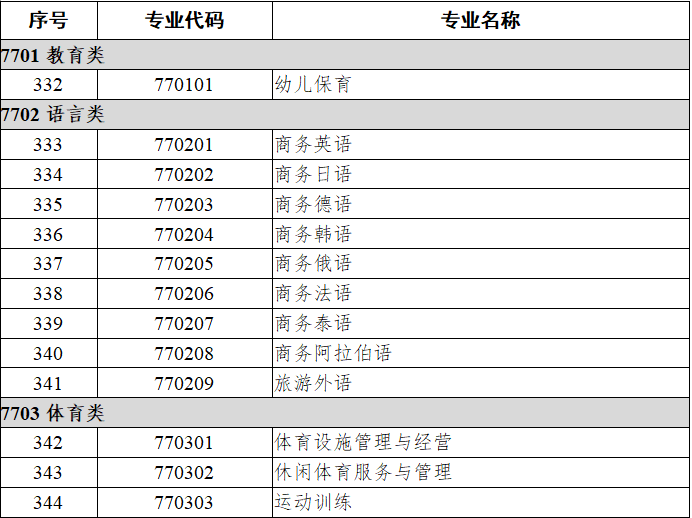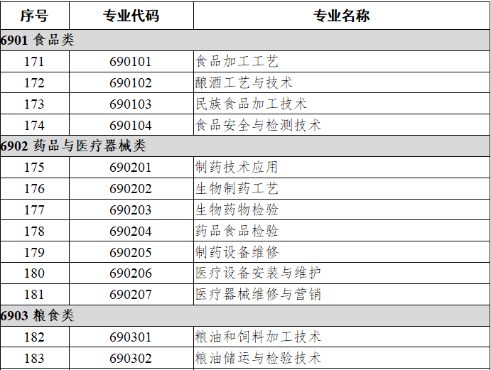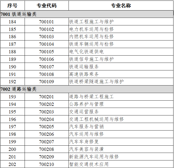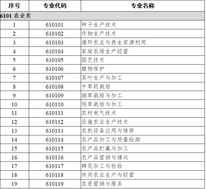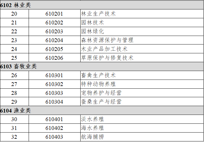 职业教育专业目录