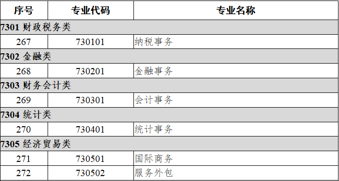 财经商贸大类