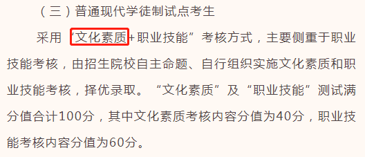 现代学徒制考核的是文化素质而不是普通高职自主招生的文化基础,传统的“文化基础”主要考传统语数英,那“文化素质”呢?这四个字存在很大变化的可能性,有可能是我们中职生压根没接触过的内容。