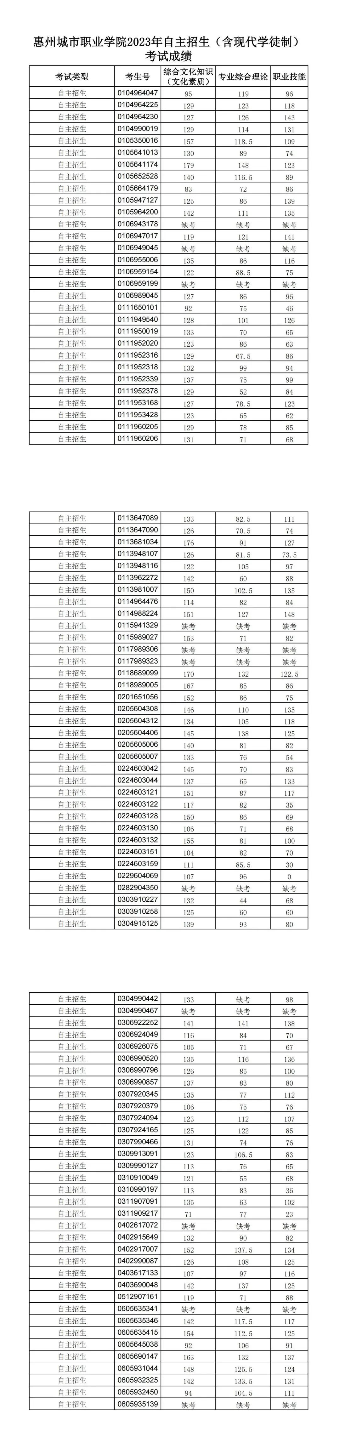 关于公布2023年自主招生(普通现代学徒制)考试成绩的通知