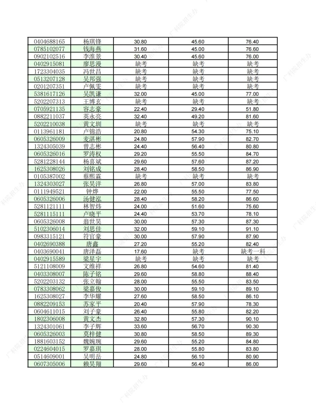 附考生详细成绩如下: