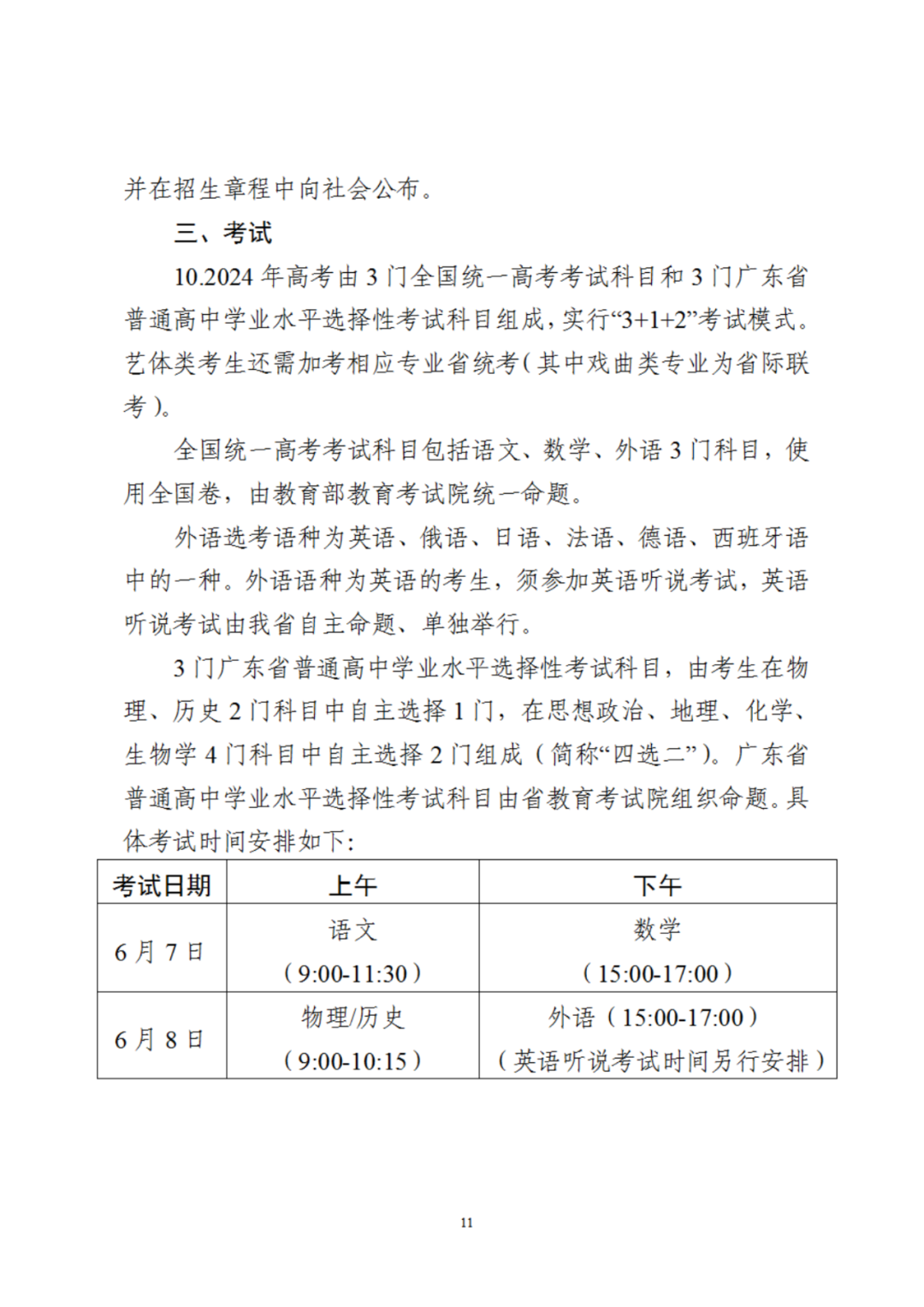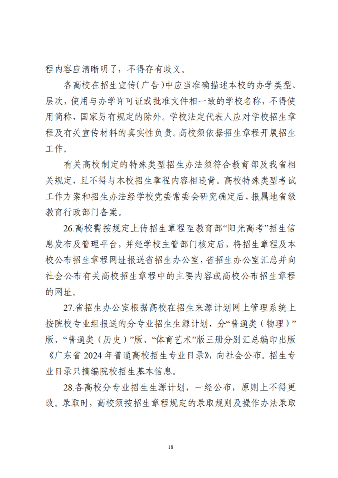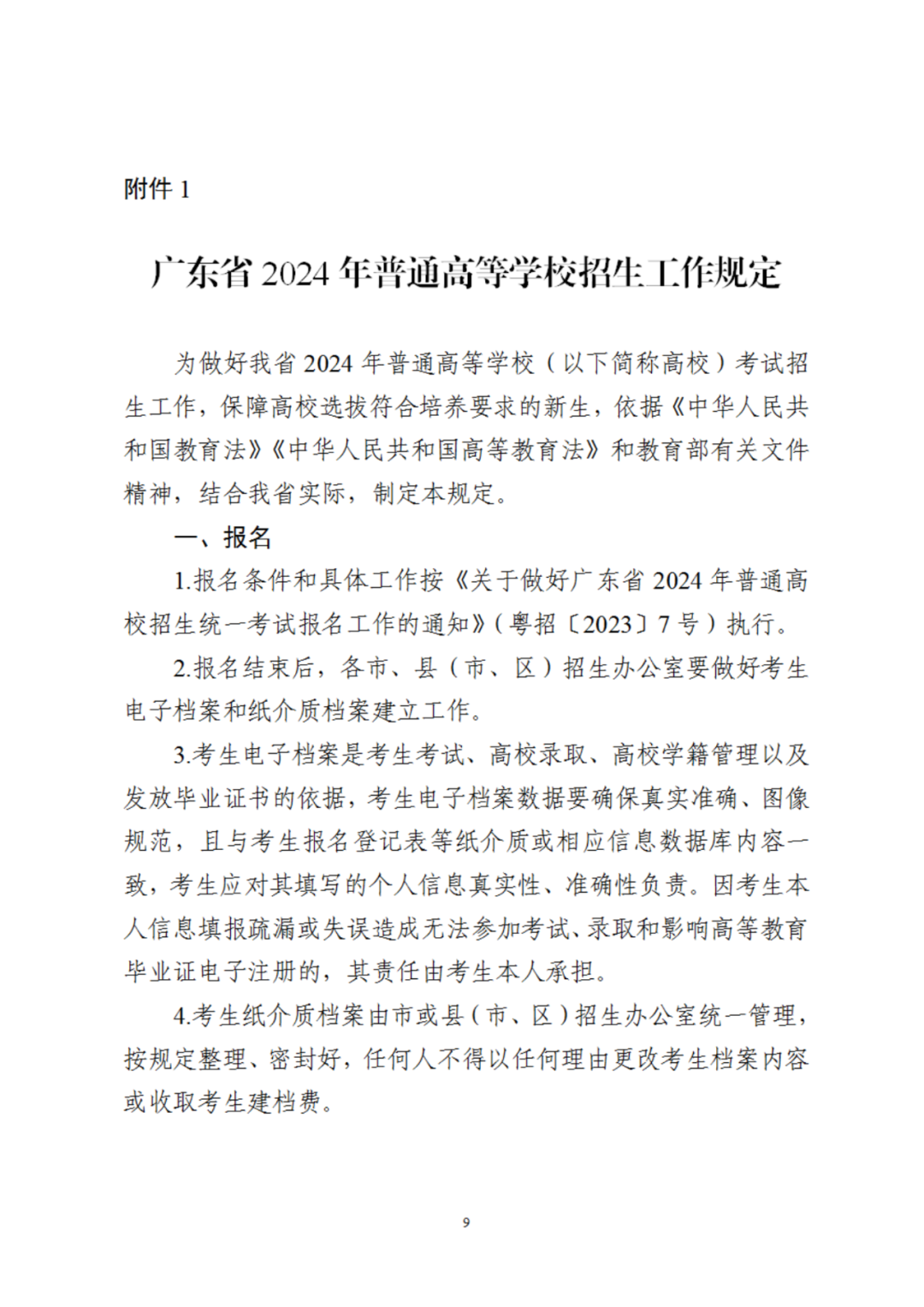 广东省2024年普通高校招生工作坚持以习近平新时代中国特色社会主义思想为指导,深入贯彻落实党的二十大精神,全面贯彻党的教育方针,进一步深化高考综合改革、加强规范管理、维护公平公正,确保考试招生工作安全平稳有序。根据《教育部关于做好2024年普通高校招生工作的通知》(教学〔2024〕2号)精神,结合我省实际,现将有关事项通知如下。