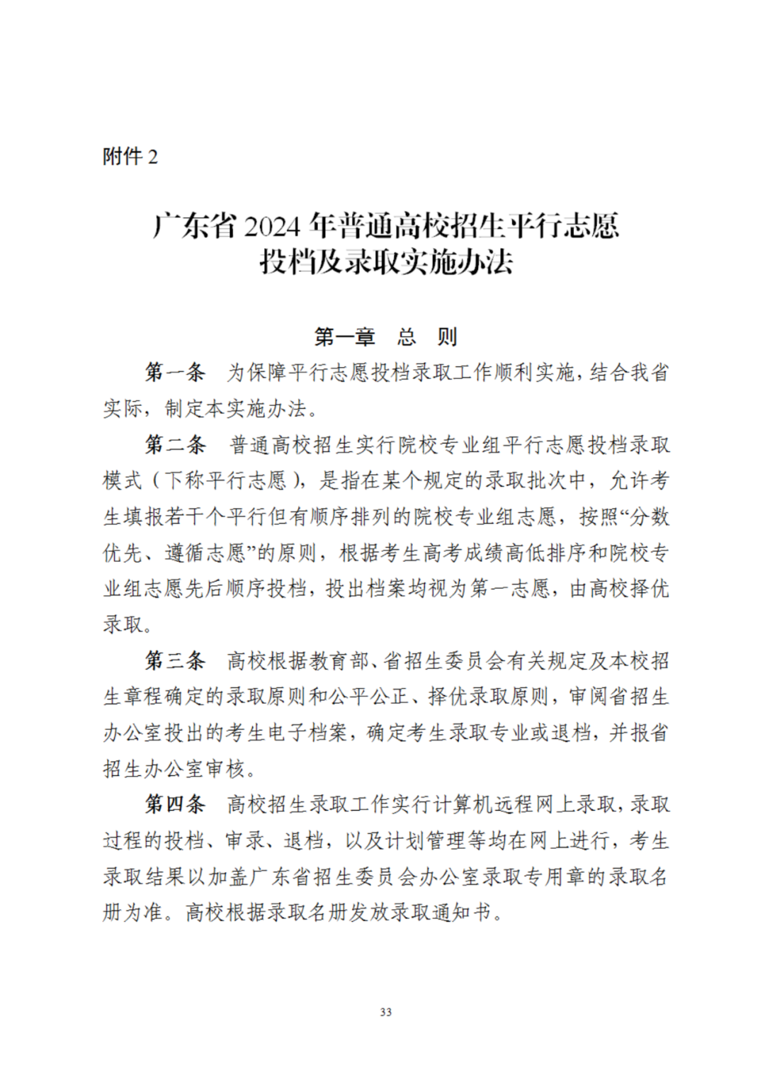 2.广东省2024年普通高等学校招生平行志愿投档及录取实施办法