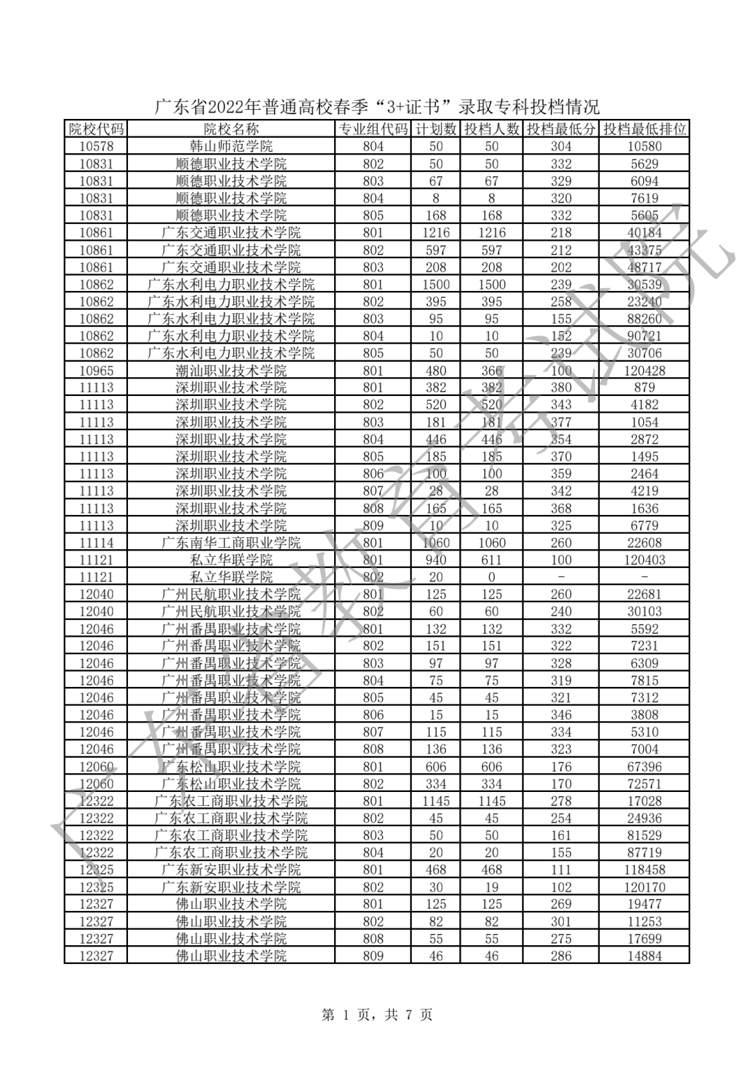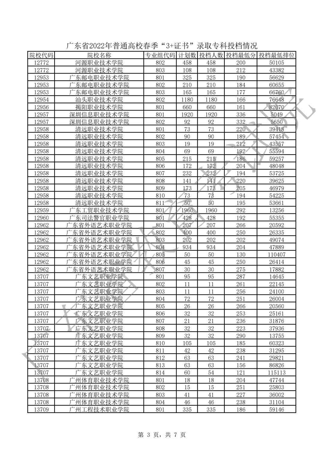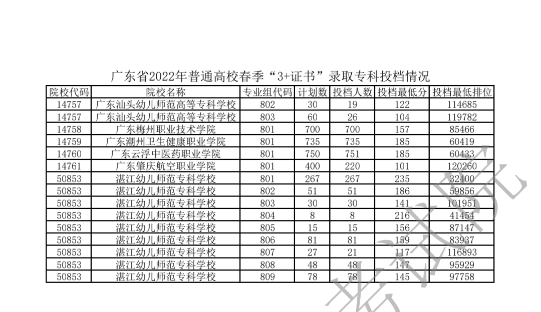 2022年3+证书投档情况