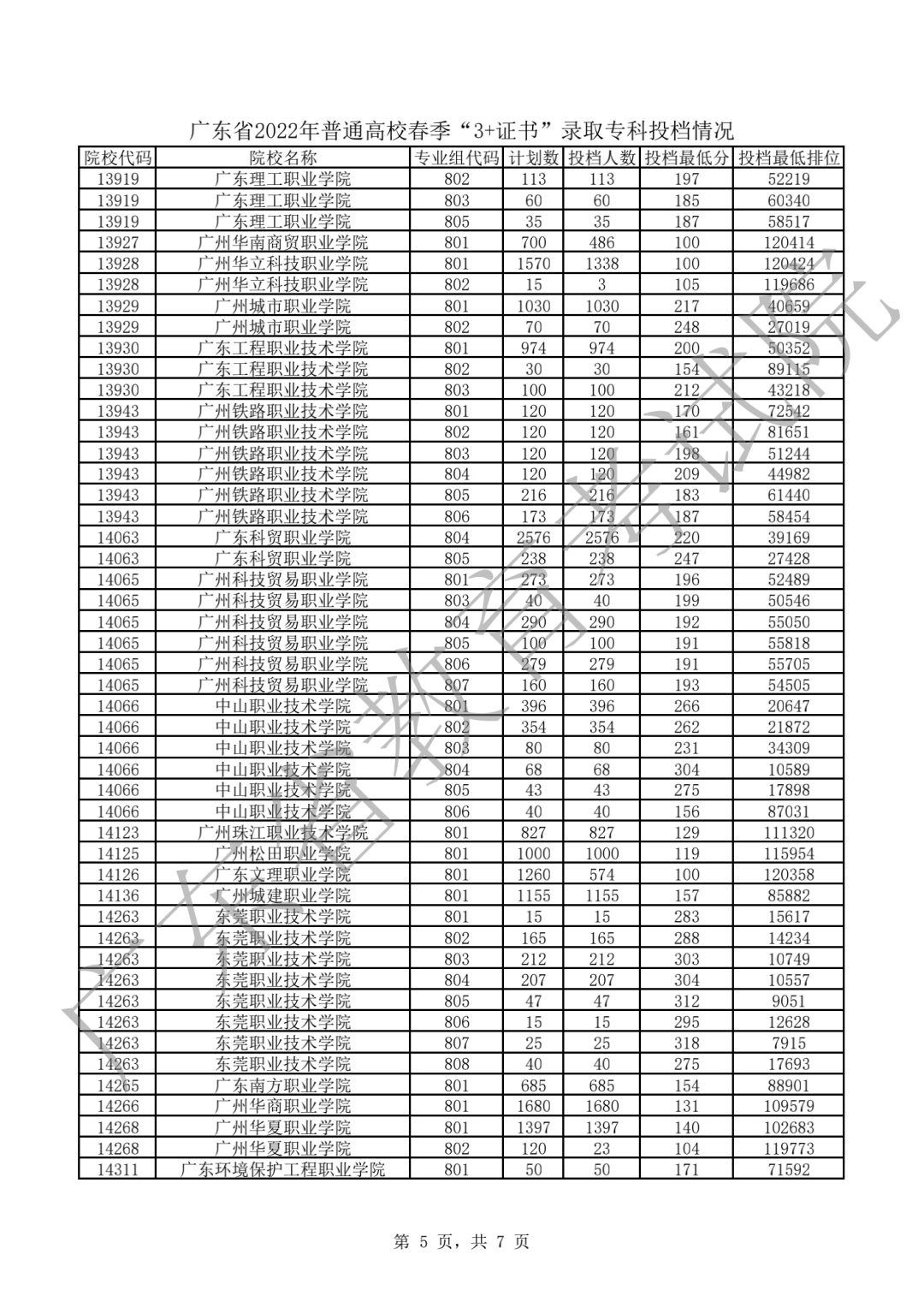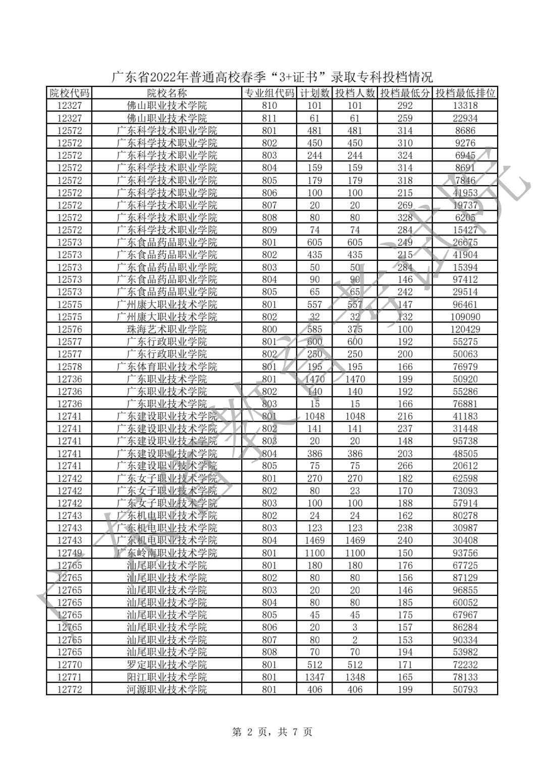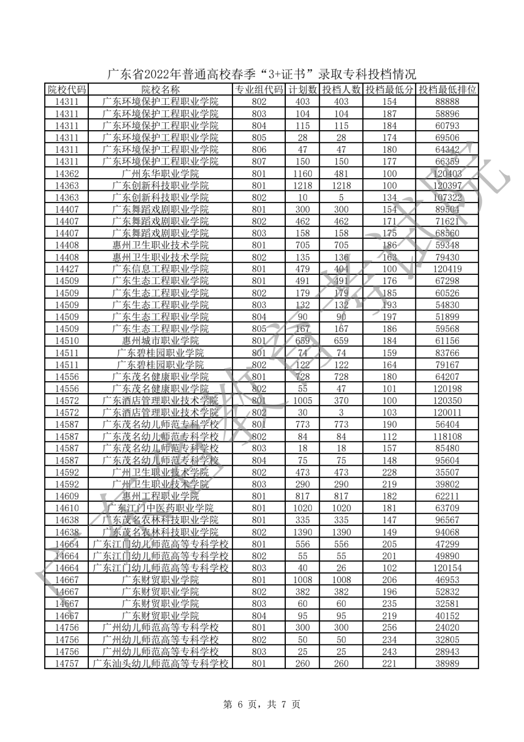 2022年3+证书投档情况