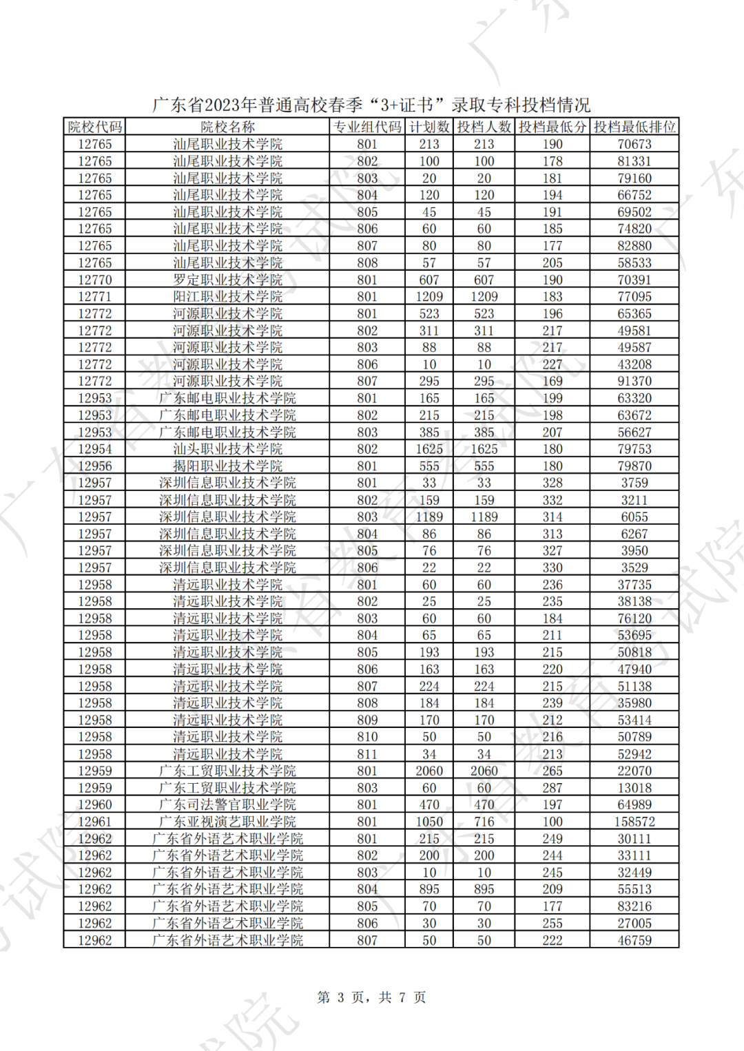 2023年3+证书投档情况
