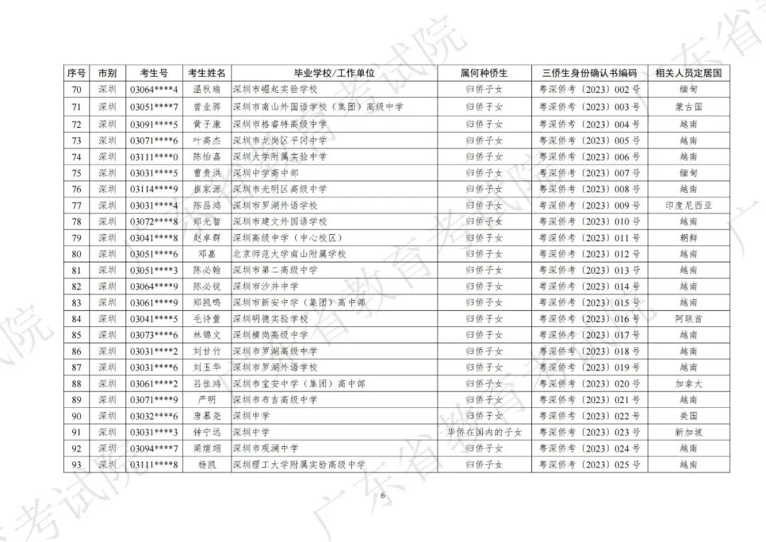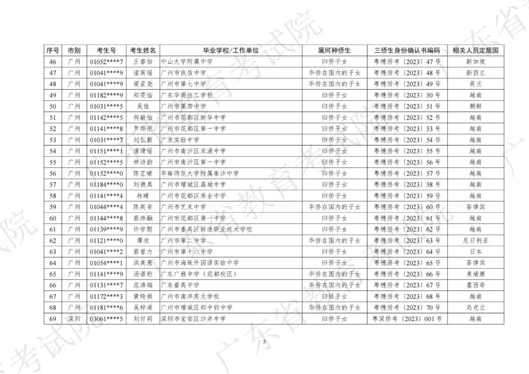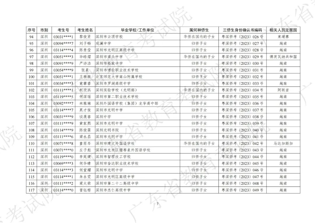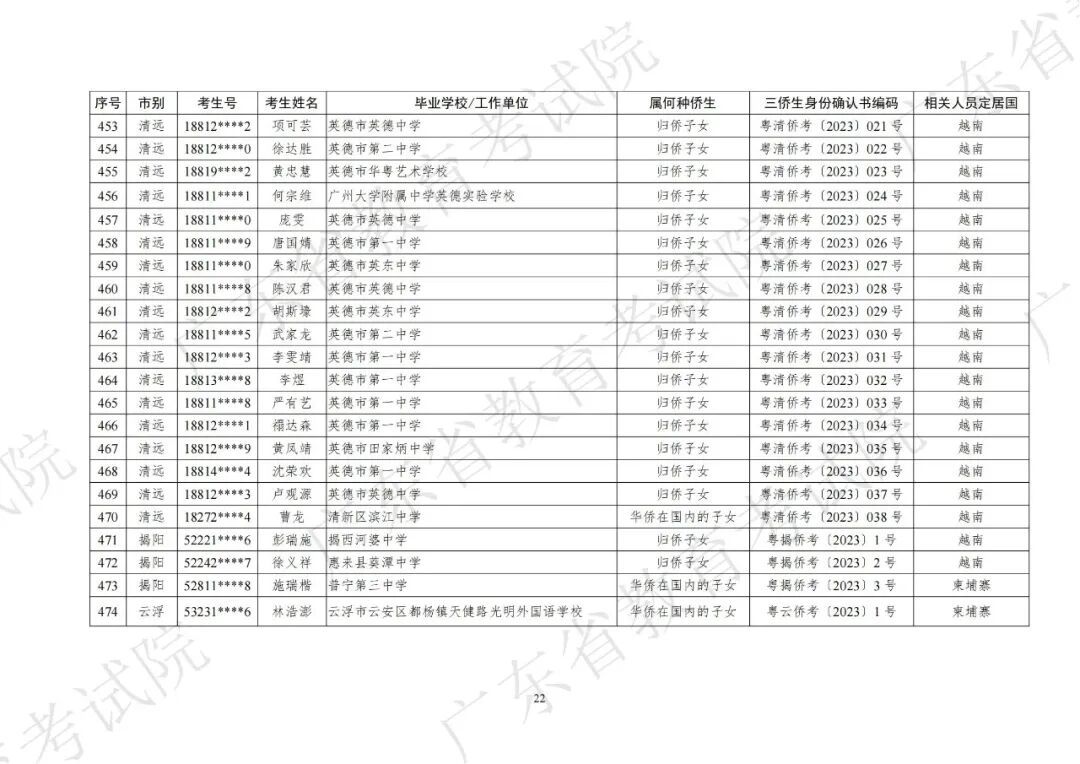 注意:归侨的孙子女、外孙子女,华侨在国内的孙子女、外孙子女,港澳同胞的子女等均不属于“三侨生”范围。