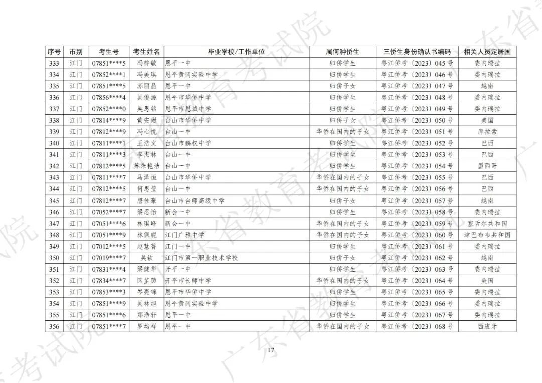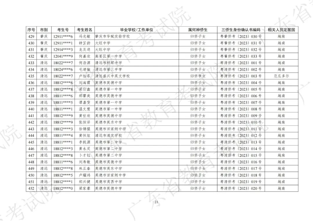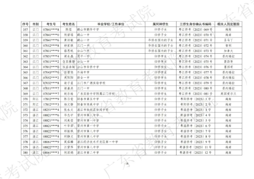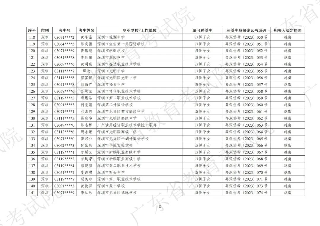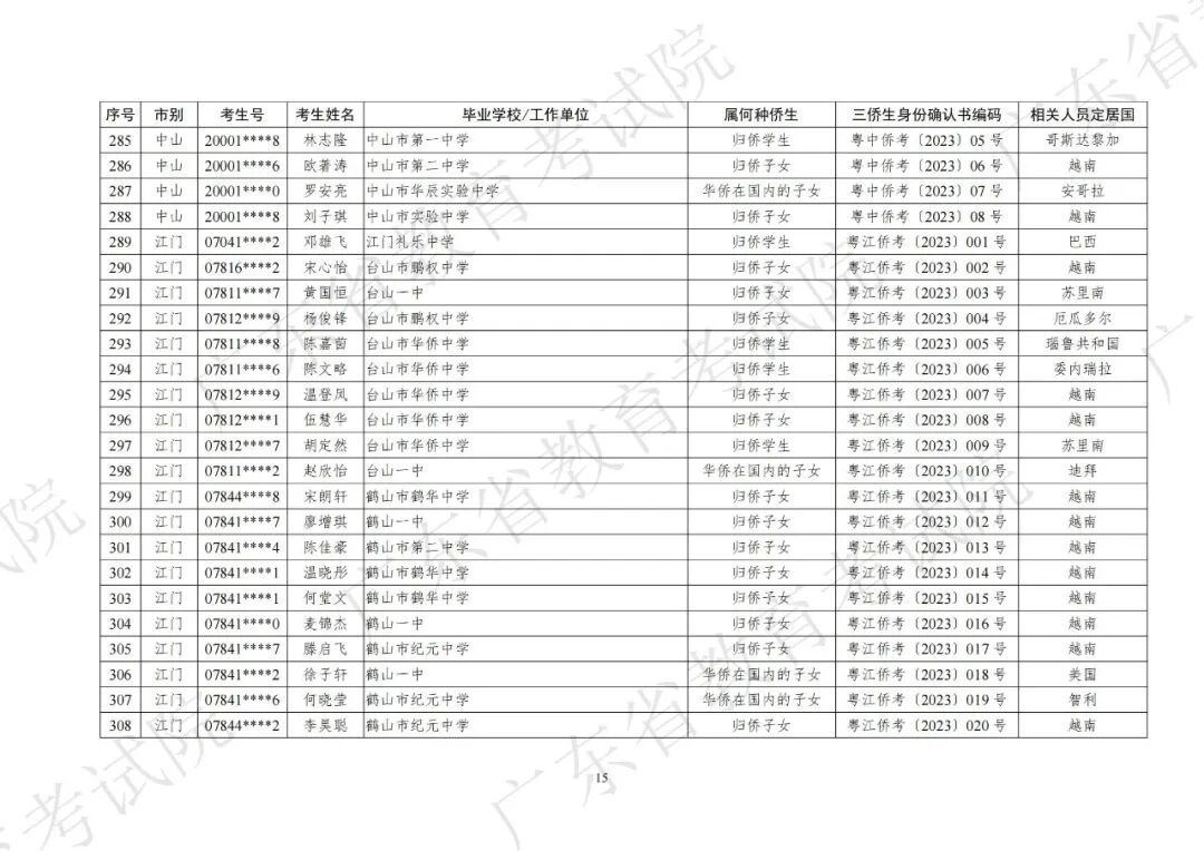 注意:归侨的孙子女、外孙子女,华侨在国内的孙子女、外孙子女,港澳同胞的子女等均不属于“三侨生”范围。