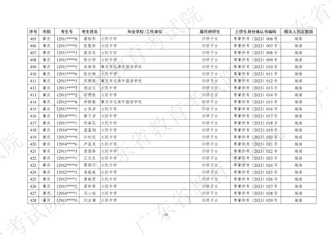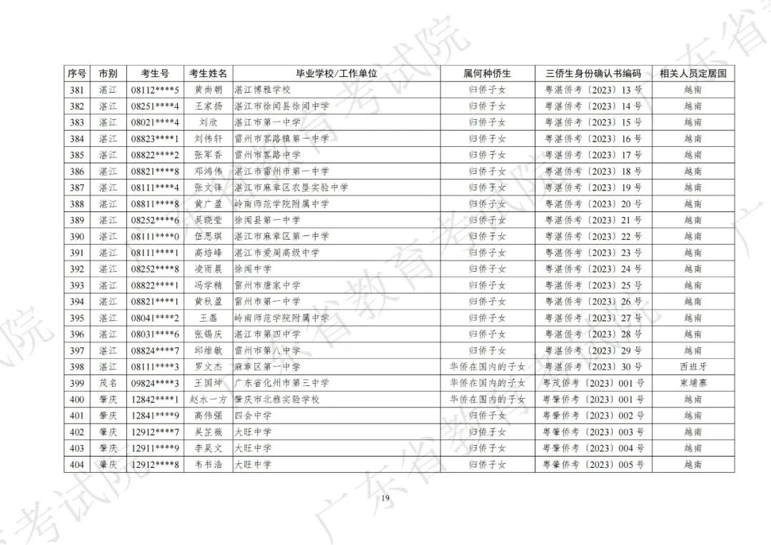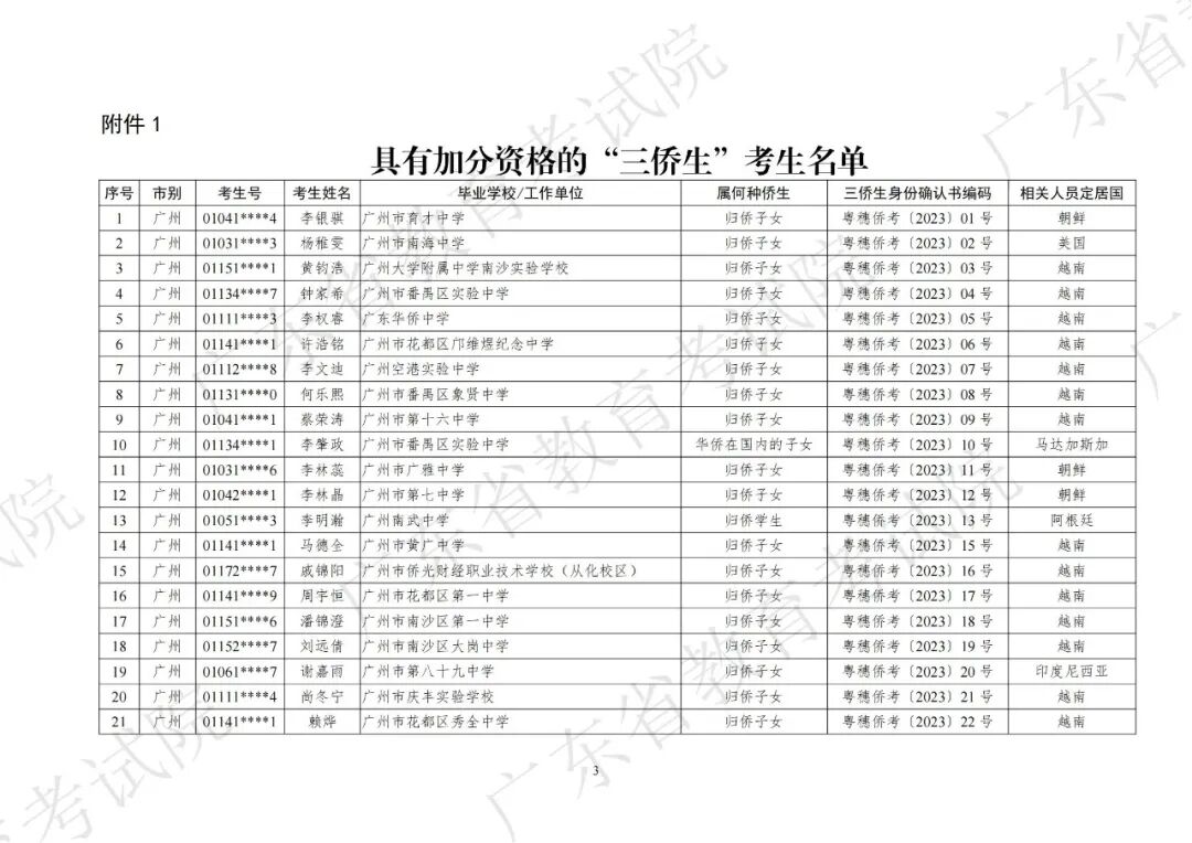 3.具有加分资格的广东省少数民族聚居区少数民族考生名单