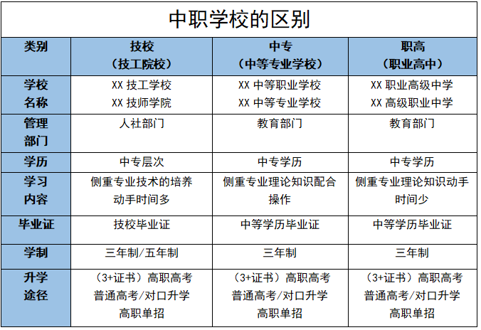 中职资讯|中职学校有哪些类型、等级?技校、中专和职高区别