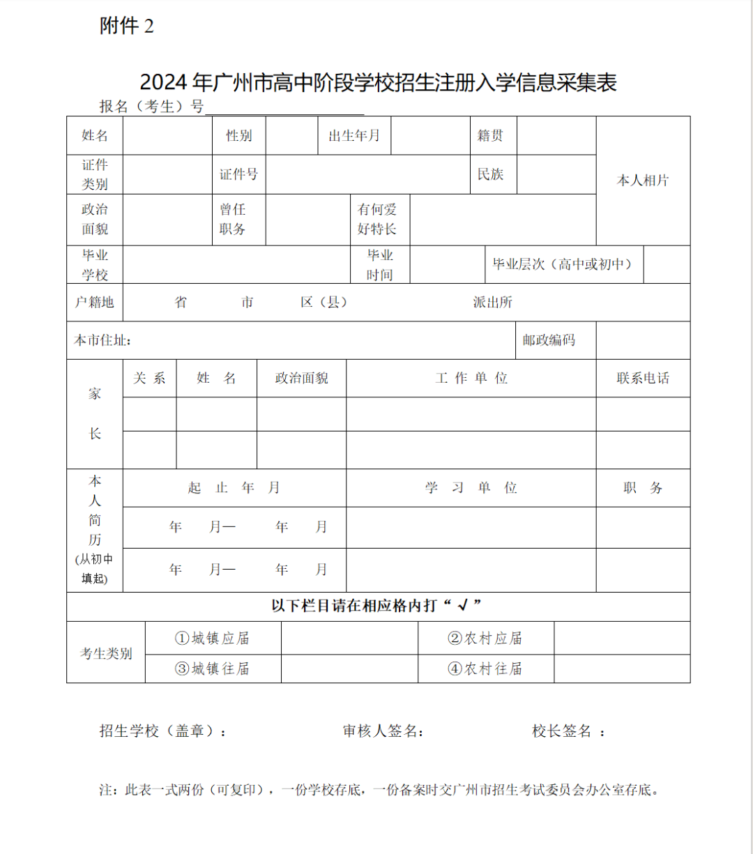 2.2024年广州市高中阶段学校招生注册入学信息采集表