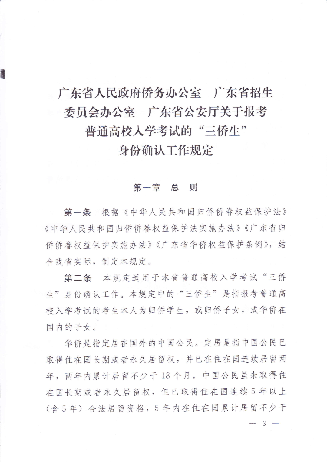 在外省参加高考的广东省户籍考生需要在广东办理“三侨生”身份确认的,应当按照本规定明确的时限向本人户籍所在地的地级以上市侨务主管部门提交申请。