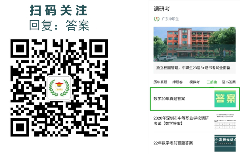 答案查看方式第一步扫描进入【广东中职生】公众号第二步回复【答案】