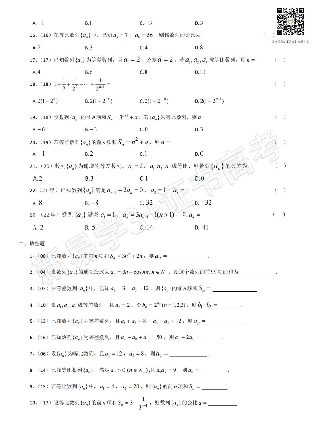 > 数学课堂|近20年数学【数列小题】真题合集