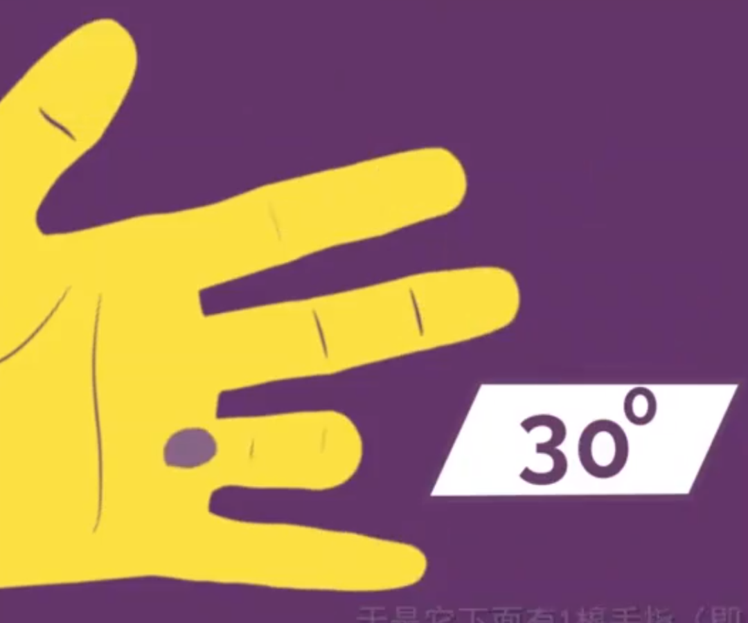 例1:30°对应的是无名指,令无名指弯曲。