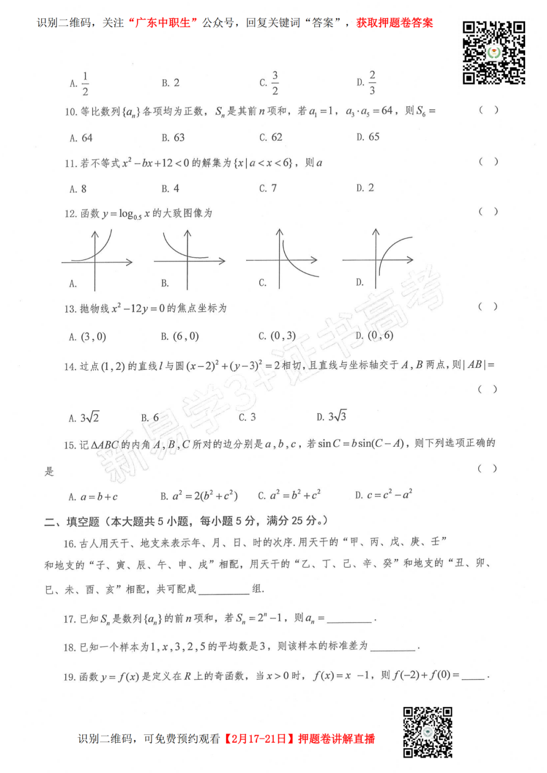 答案查看方式第一步扫描进入【广东中职生】公众号第二步回复【答案】